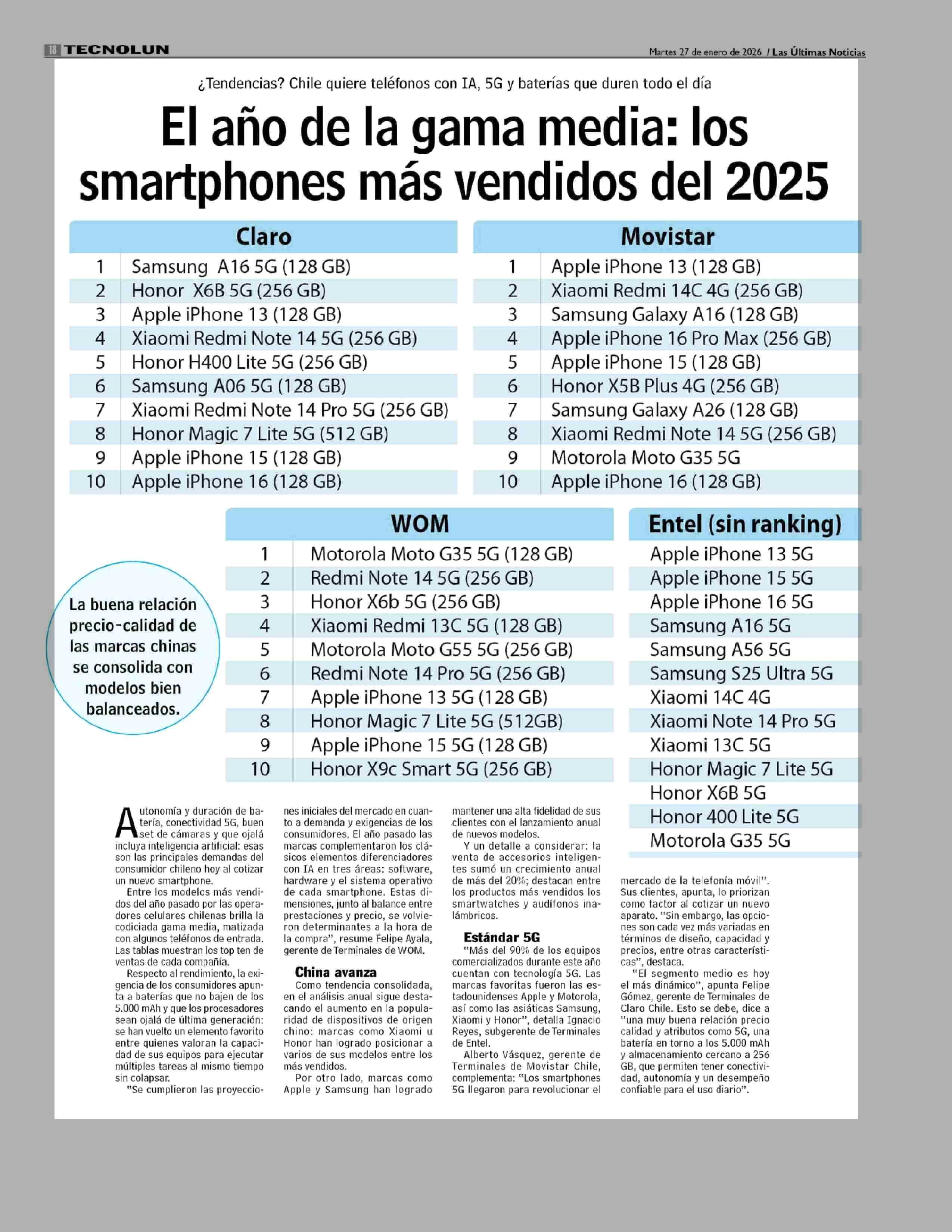 El año de la gama media: los smartphones más vendidos del 2025 27-01-2026 Las Últimas Noticias |