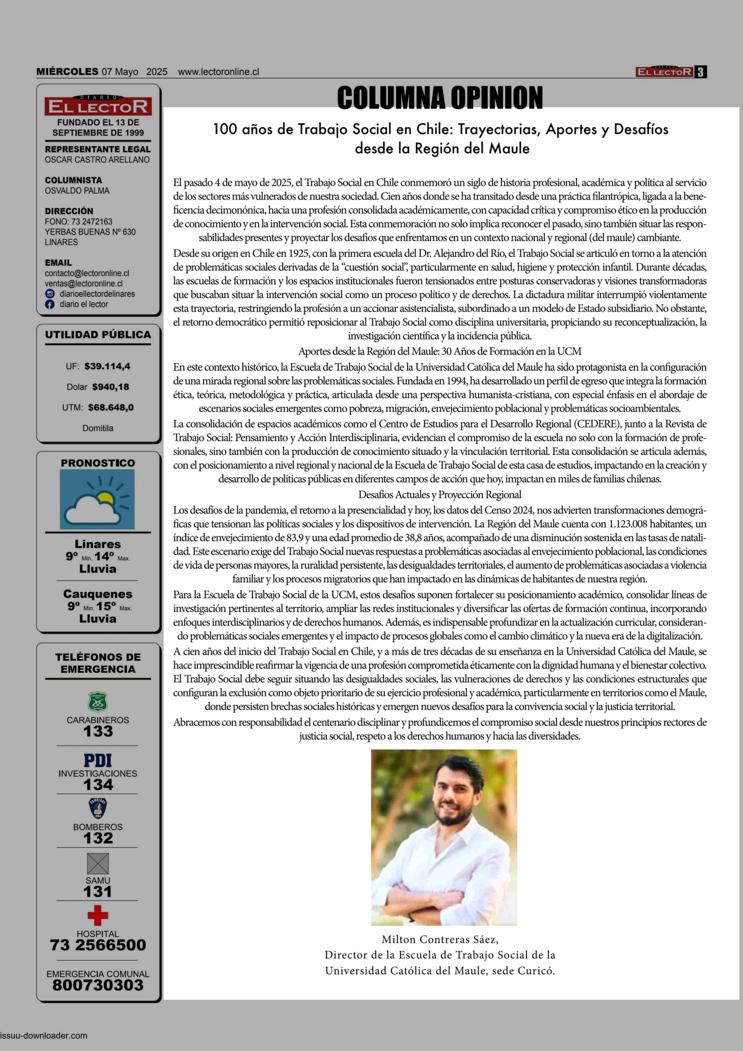 Fecha: 07-05-2025 Sector: Columnas de Opinión Región: Región del Maule