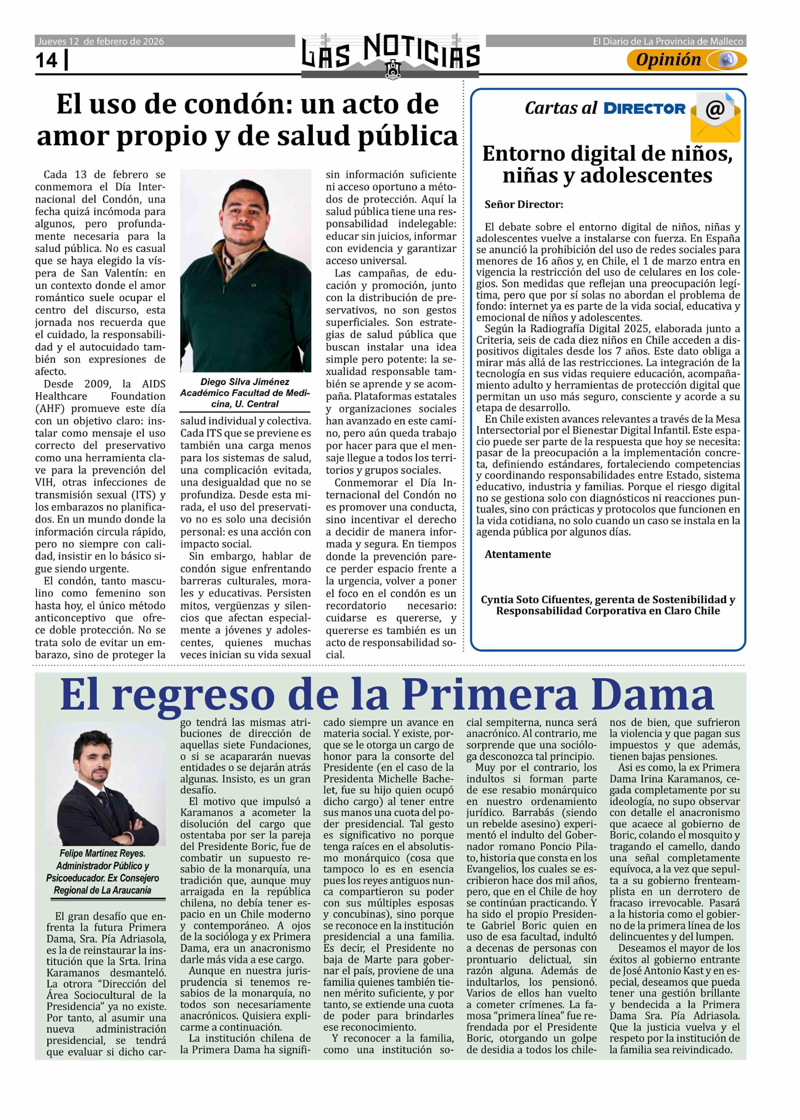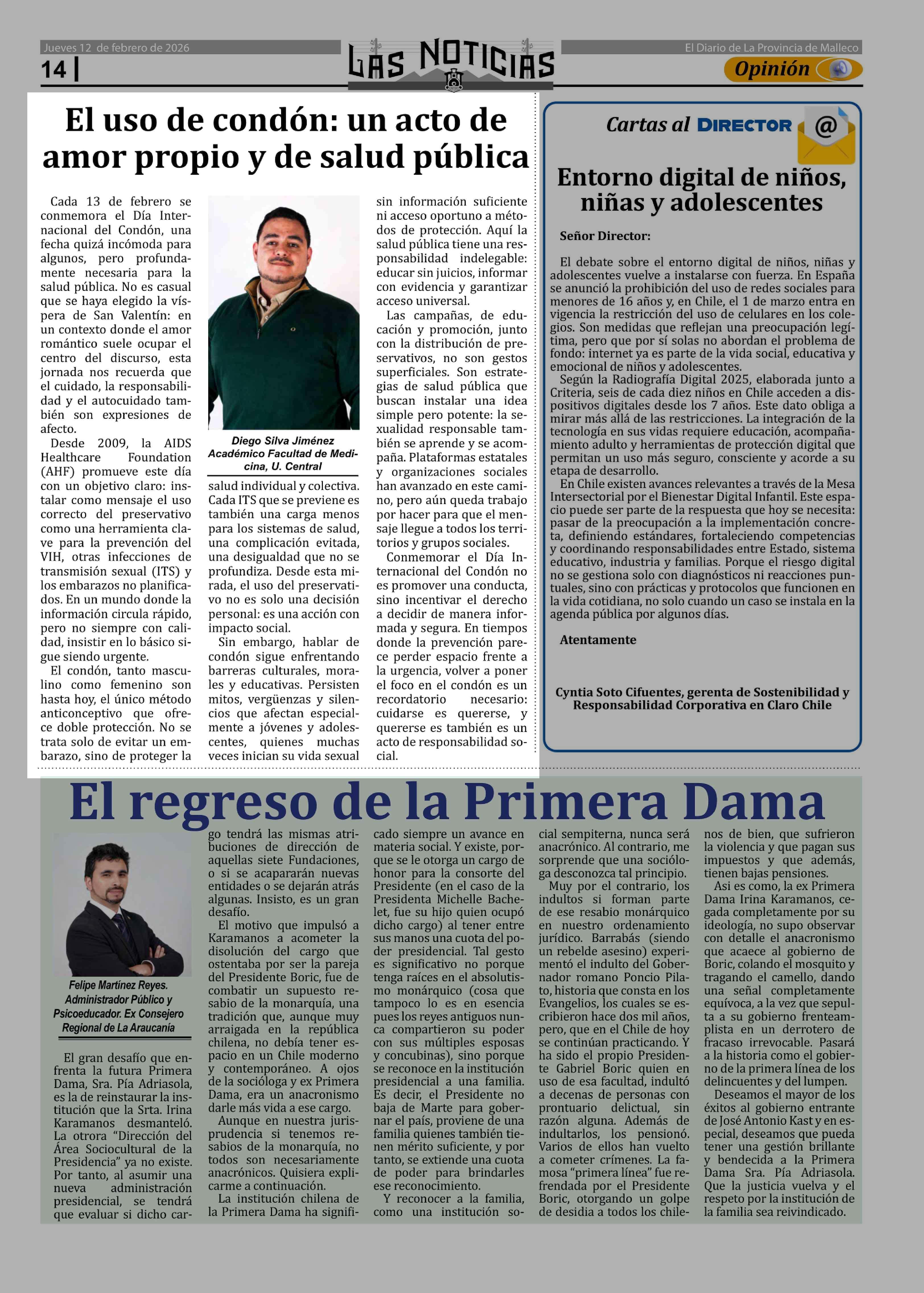 Columnas de Opinión: El uso de condón: un acto de amor propio y de salud pública 12-02-2026 Las Noticias |