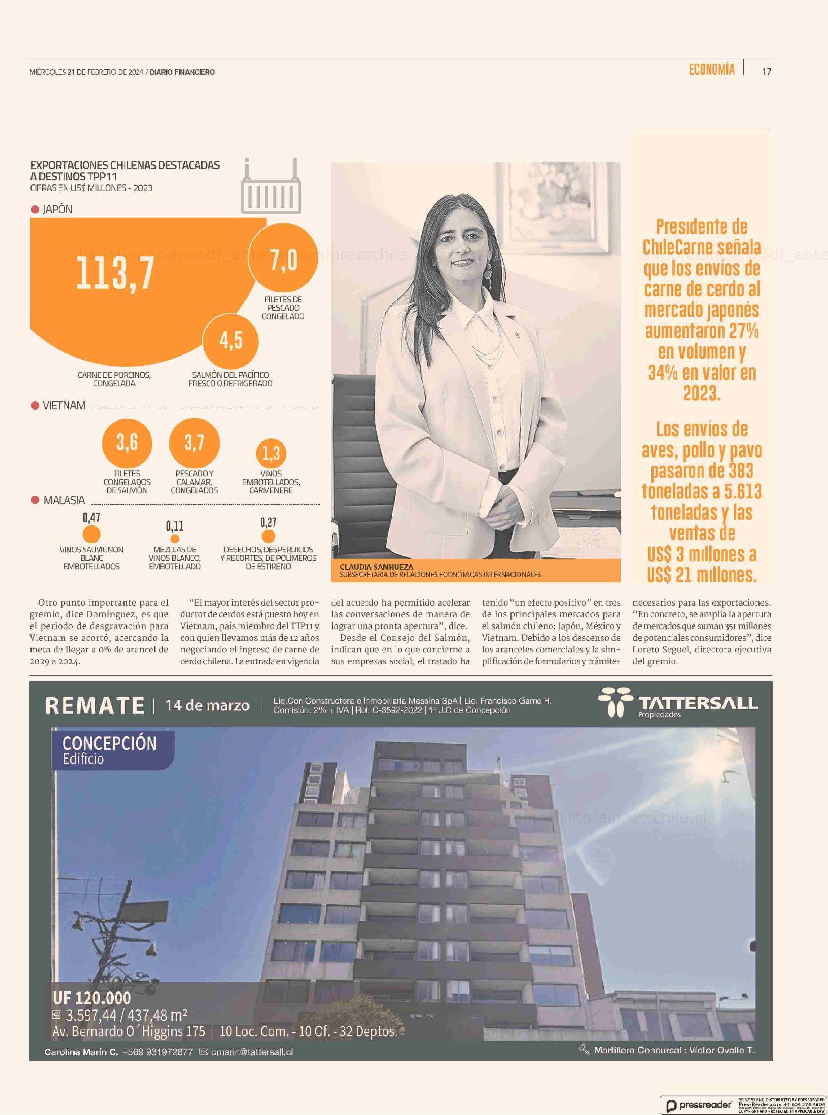 TPP11 cumple un año de vigencia y exportadores ya ven impulso para productos en mercados del bloque 21-02-2024 Diario Financiero |