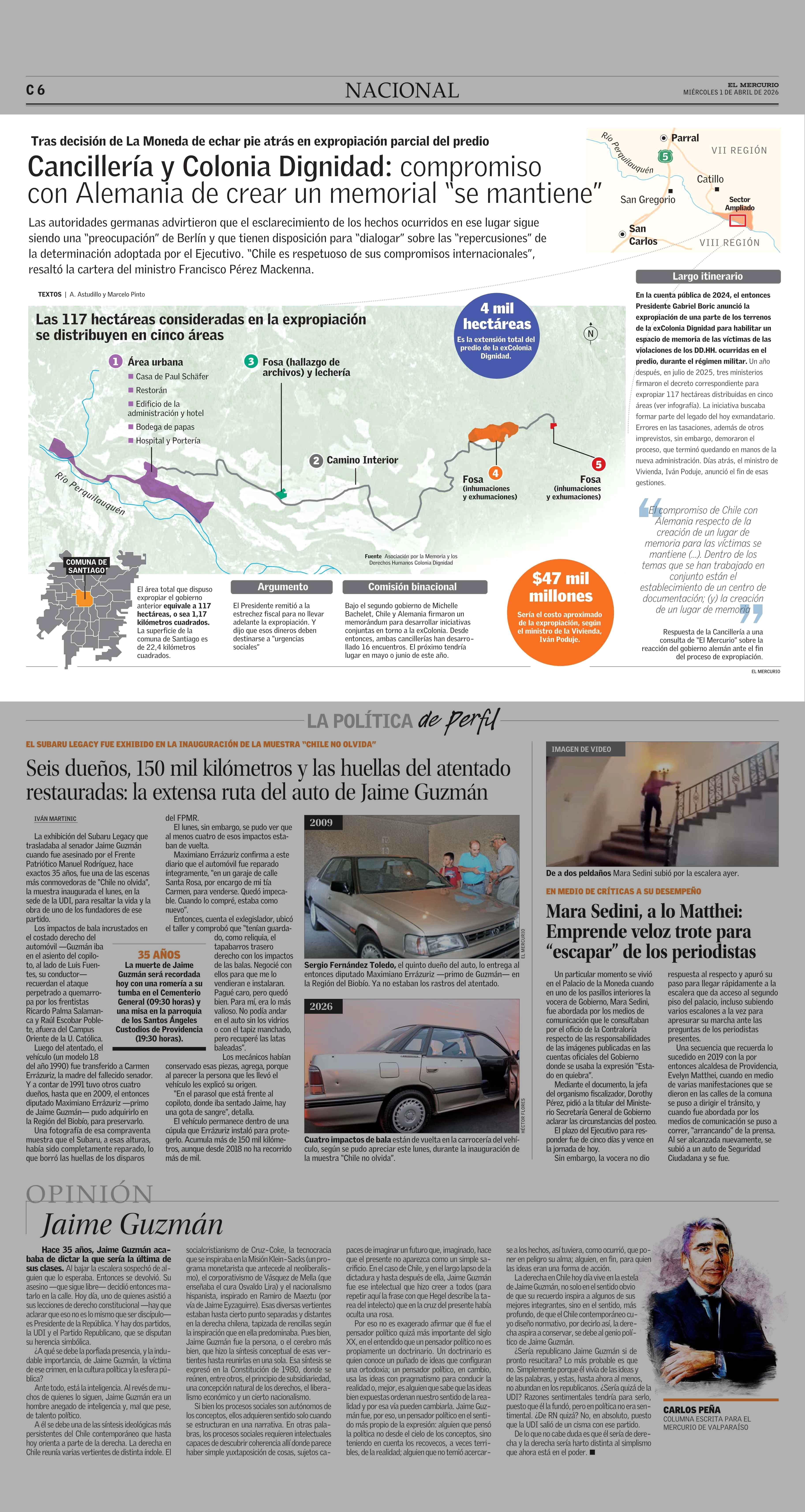 Cancillería y Colonia Dignidad: compromiso con Alemania de crear un memorial "se mantiene” 01-04-2026 El Mercurio |