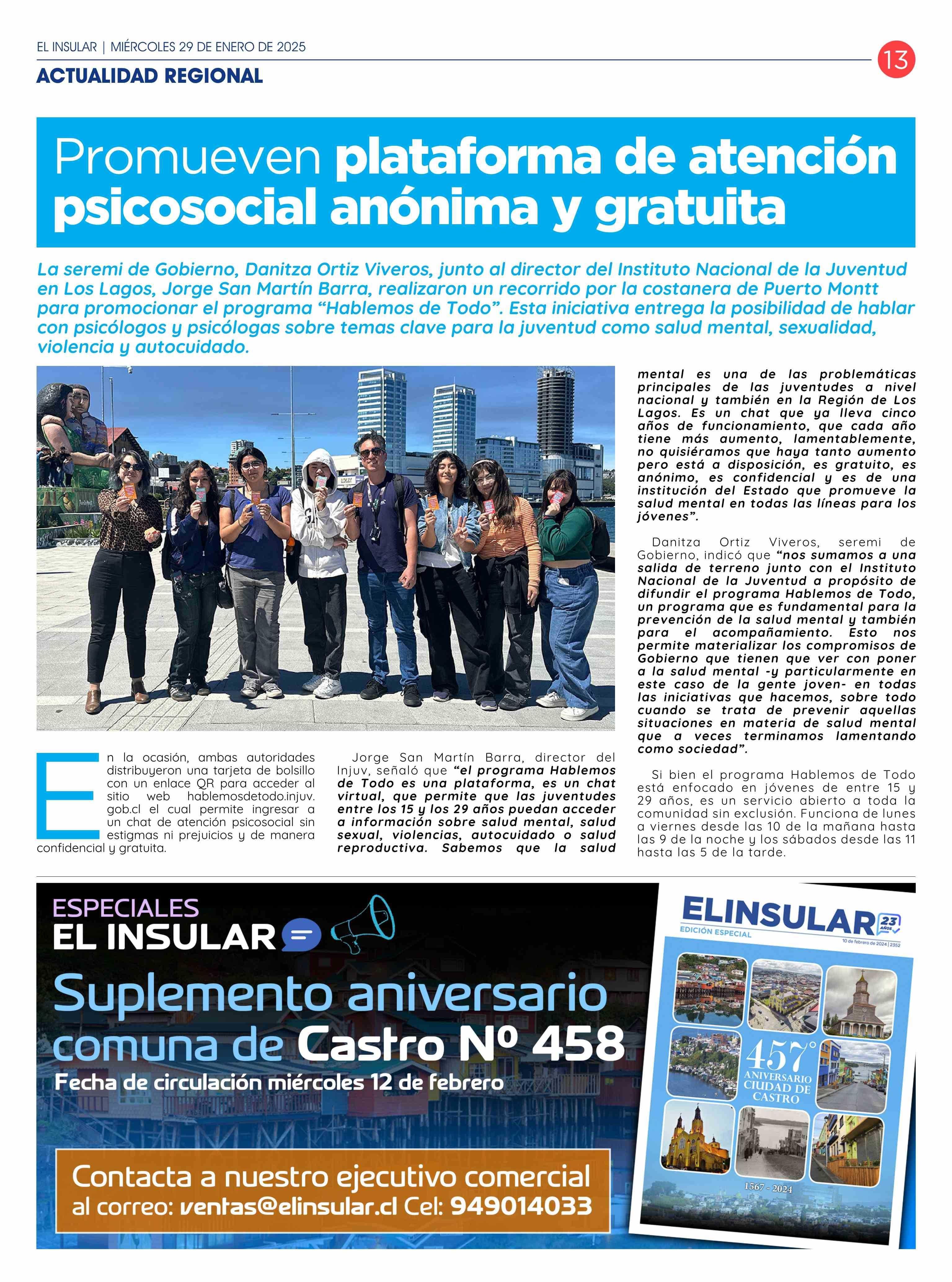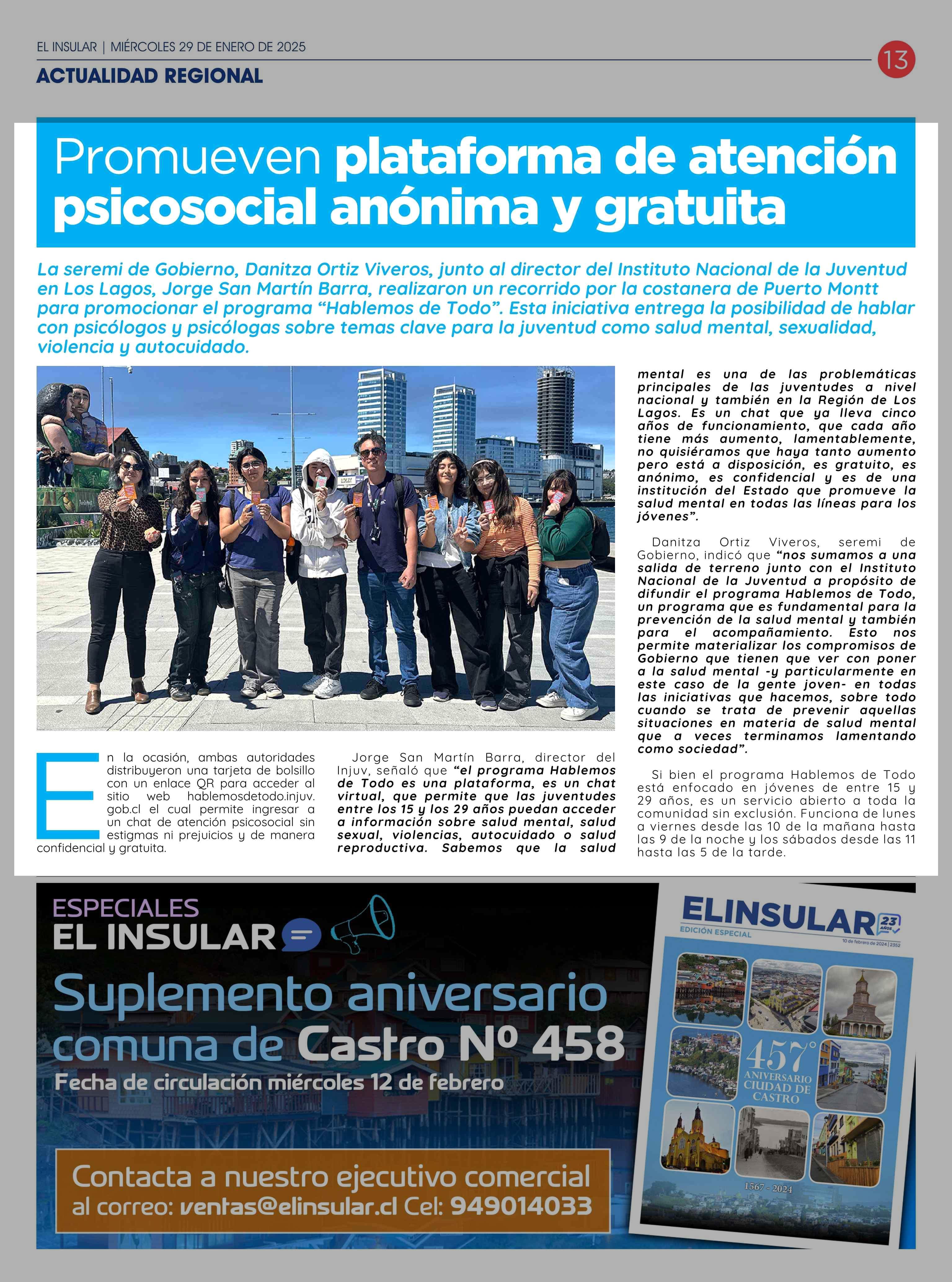 | Fecha: | 29-01-2025 | Sector: | Noticia general | Región: | Región de Los Lagos |