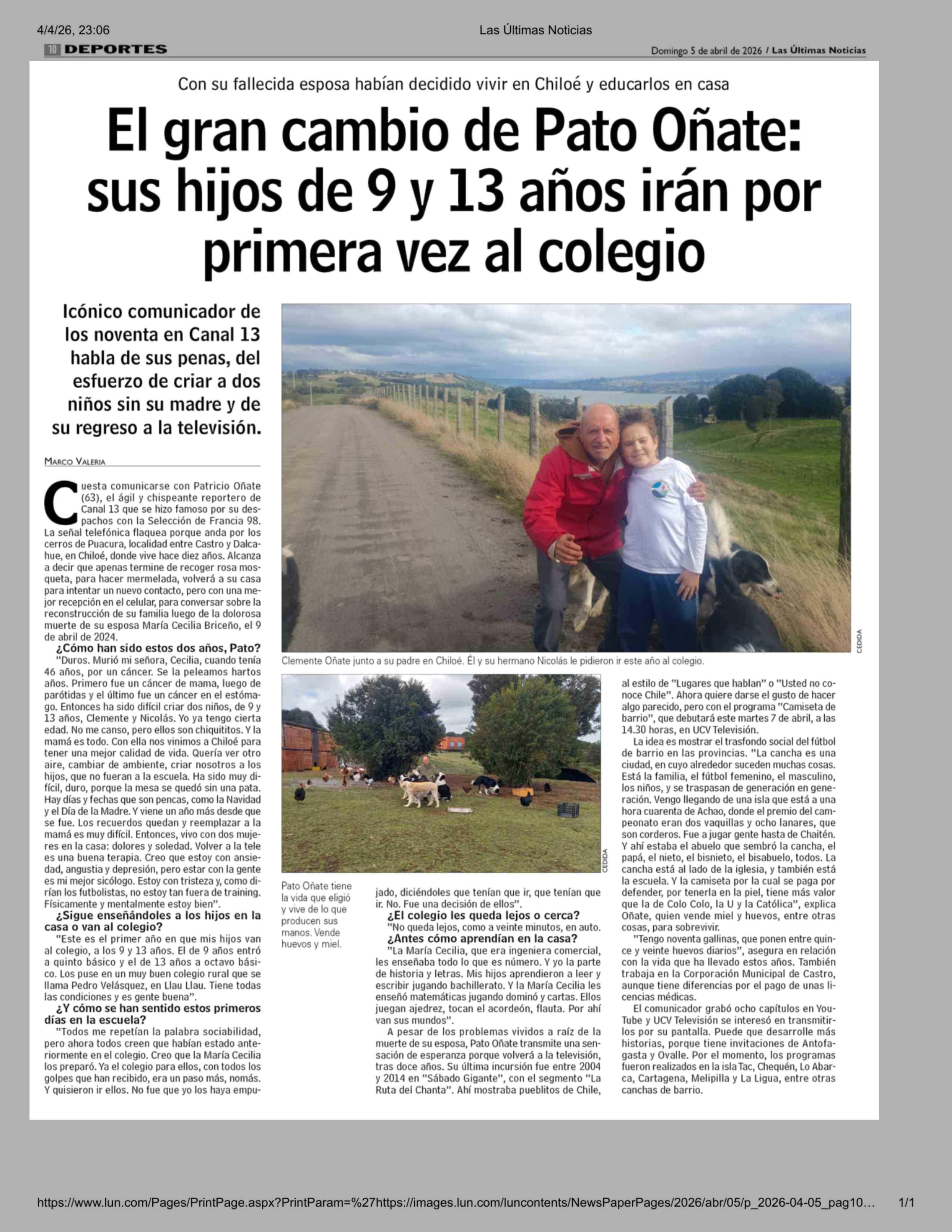El gran cambio de Pato Oñate: sus hijos de 9 y 13 años iran por primera vez al colegio 05-04-2026 Las Últimas Noticias |