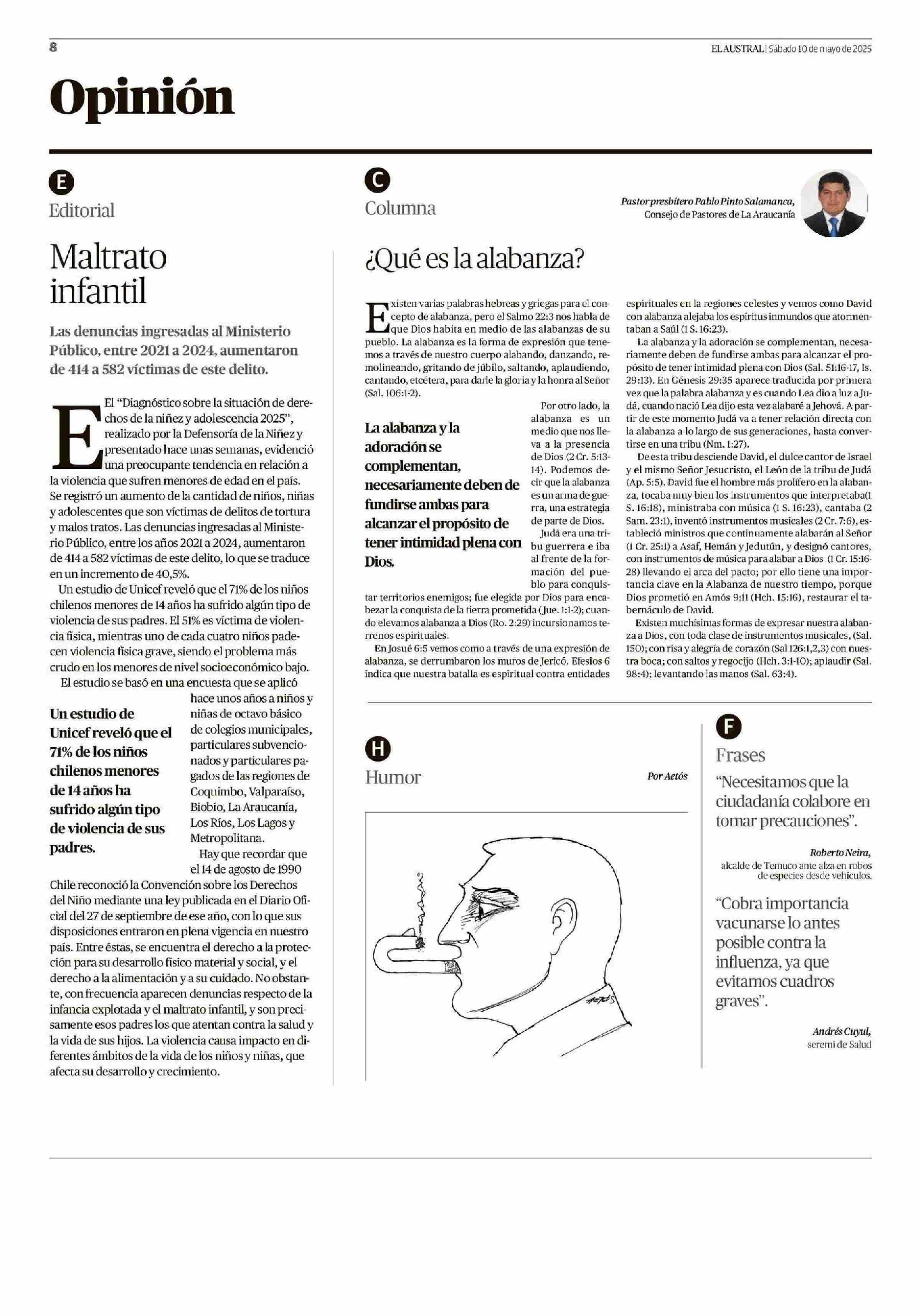 Frases “Necesitamos que la ciudadanía colabore en tomar precauciones”. 10-05-2025 El Austral de la Araucanía |
