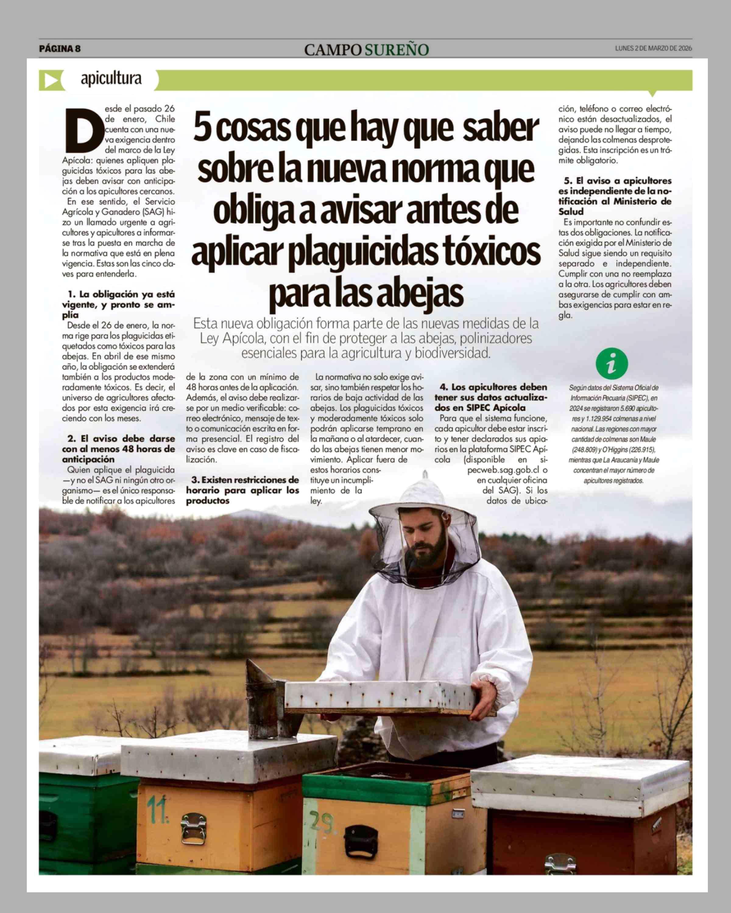 Título: 5 Cosas que hay que saber sobre la nueva norma que obliga a avisar antes de aplicar plaguicidas tóxicos para las abejas