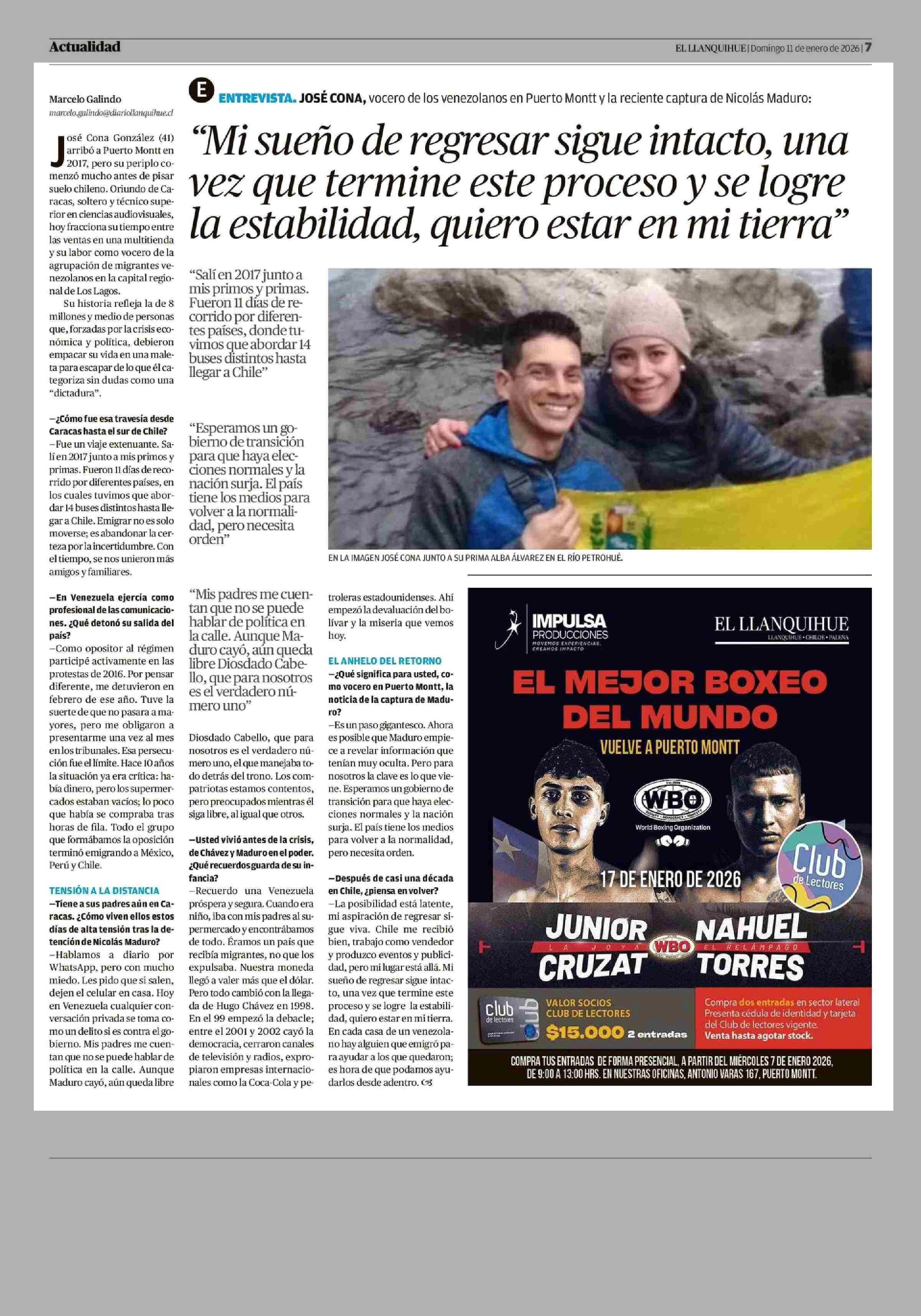 "Mi sueño de regresar sigue intacto, una vez que termine este proceso y se logre la estabilidad, quiero estar en mi tierra" 11-01-2026 El Llanquihue |