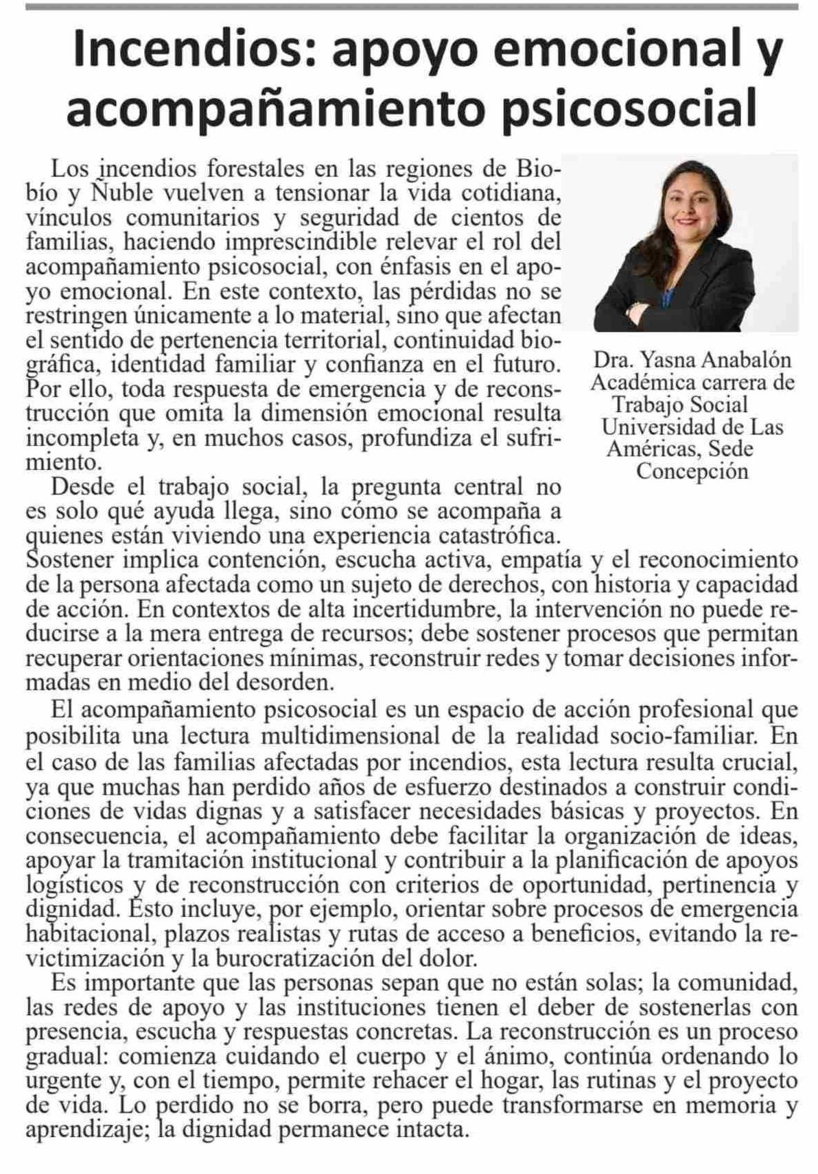 | Título: | Columnas de Opinión: Incendios: apoyo emocional y acompañamiento psicosocial |