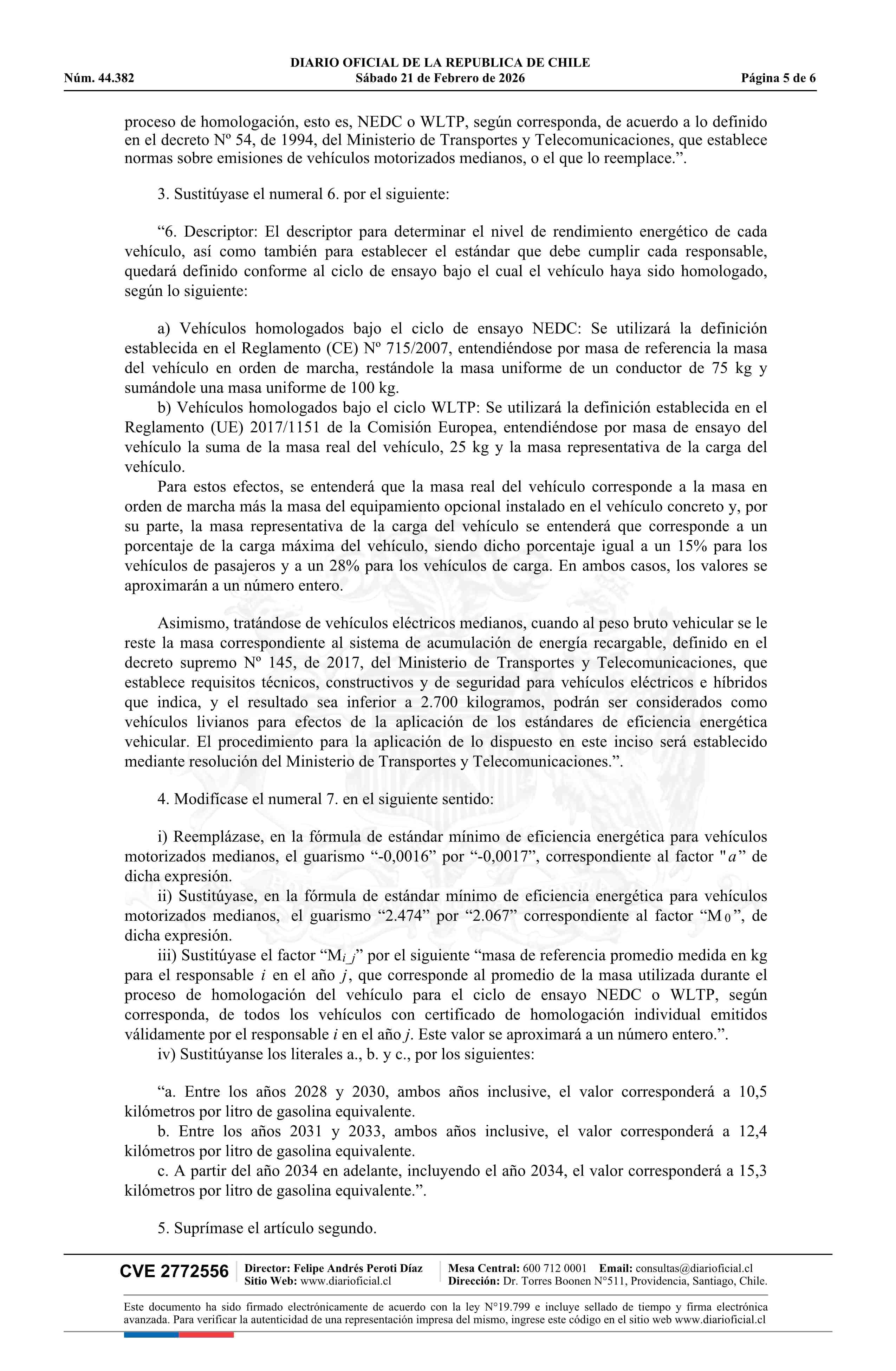 Título: Resolución exenta número 11, de 2026.- Actualiza estándar mínimo de eficiencia energética para vehículos motorizados medianos y modifica resolución Nº 14, de 2024, que fija estándar mínimo de eficiencia energética para vehículos motorizados medianos