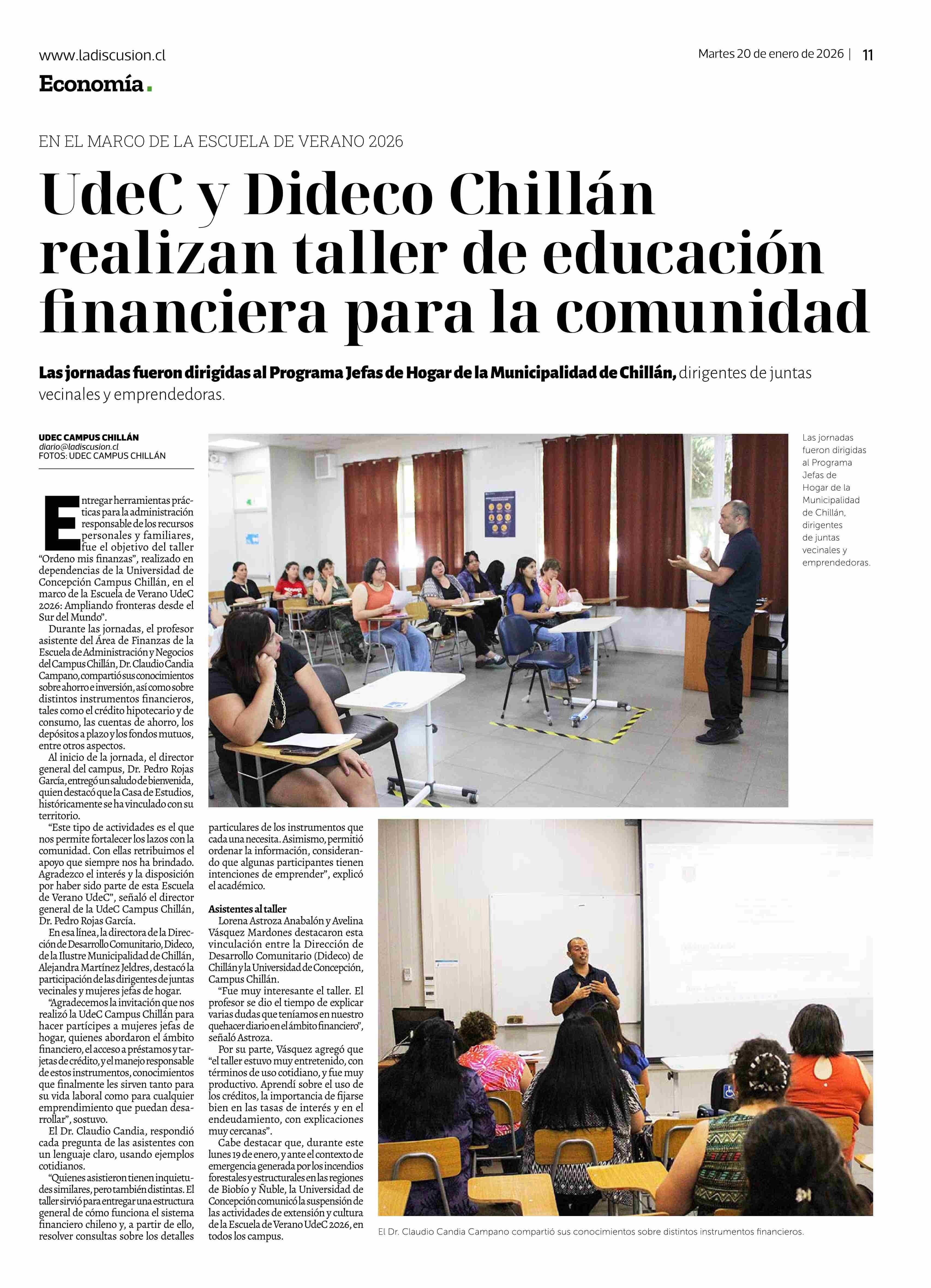UdeC y Dideco Chillán realizan taller de educación financiera para la comunidad 20-01-2026 La Discusión |