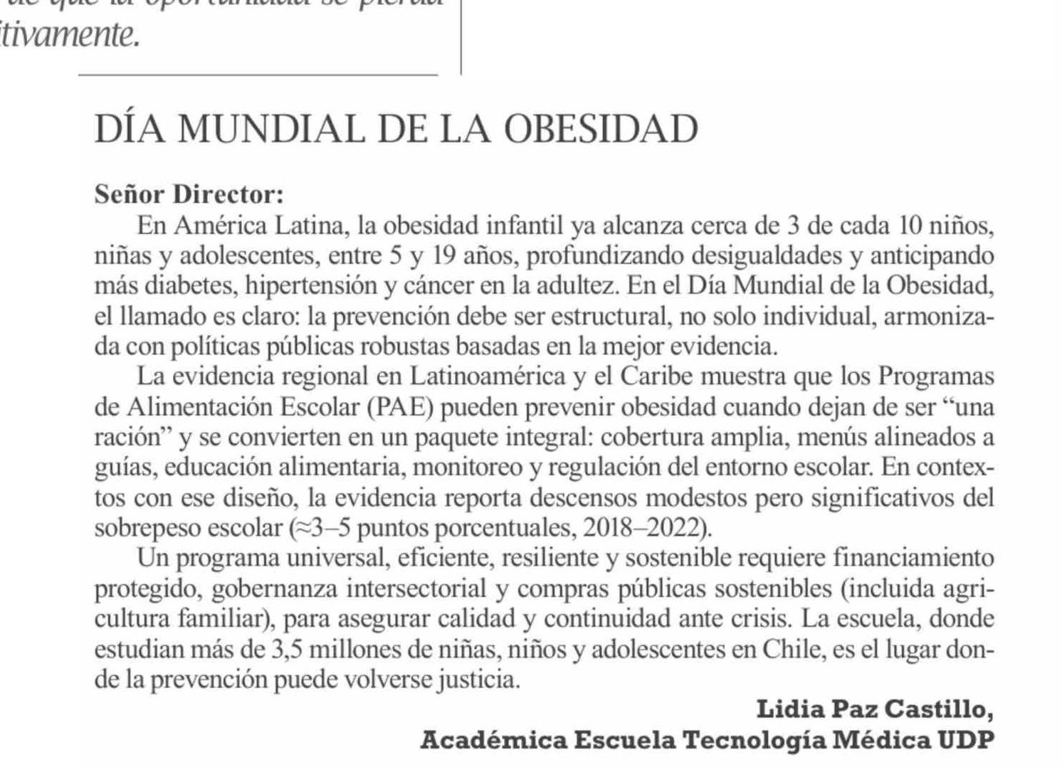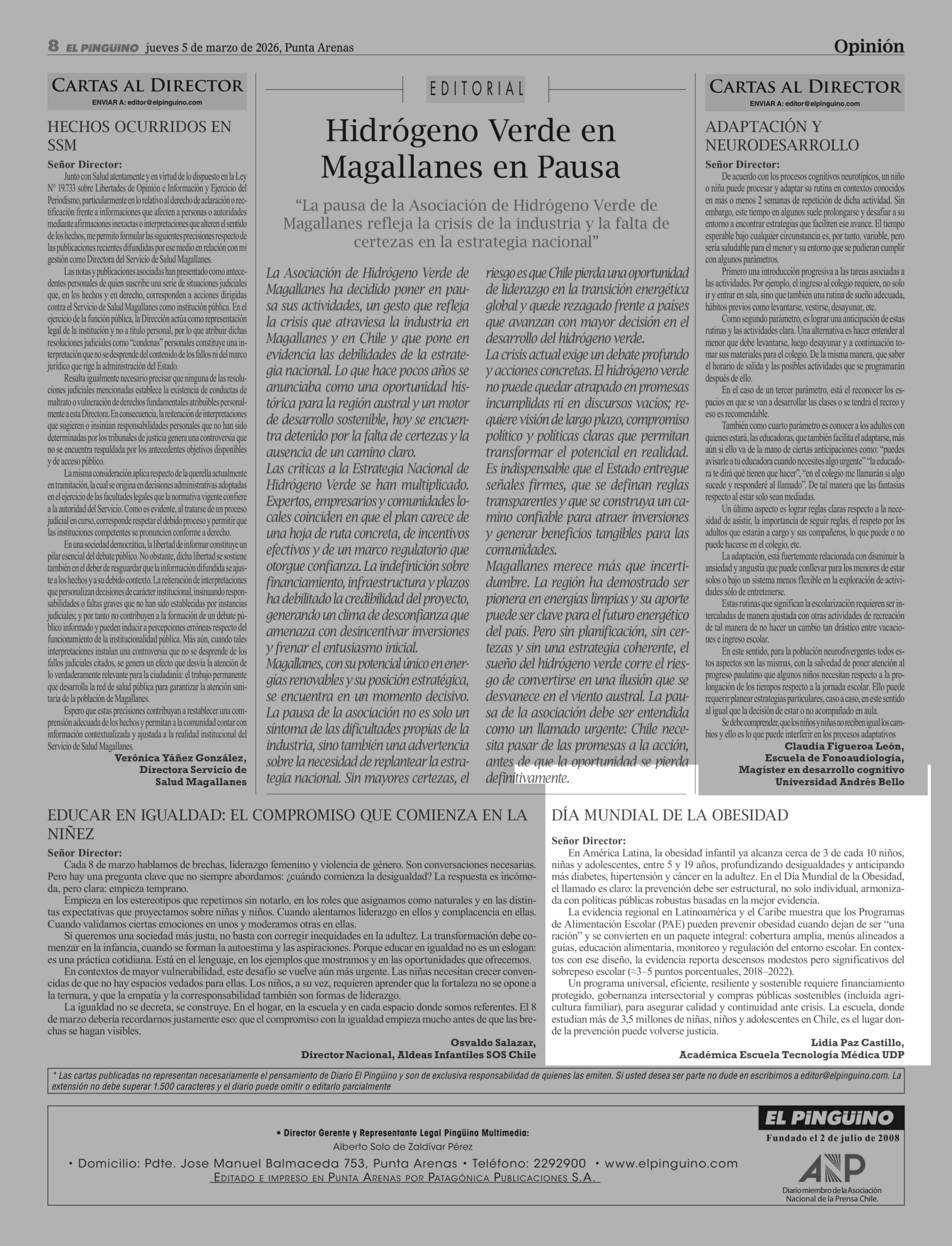 CARTAS: DÍA MUNDIAL DE LA OBESIDAD 05-03-2026 El Pingüino |