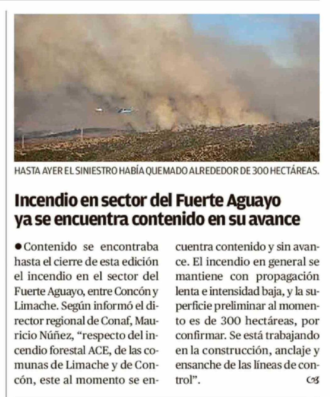 Título: Incendio en sector del Fuerte Aguayo ya se encuentra contenido en su avance