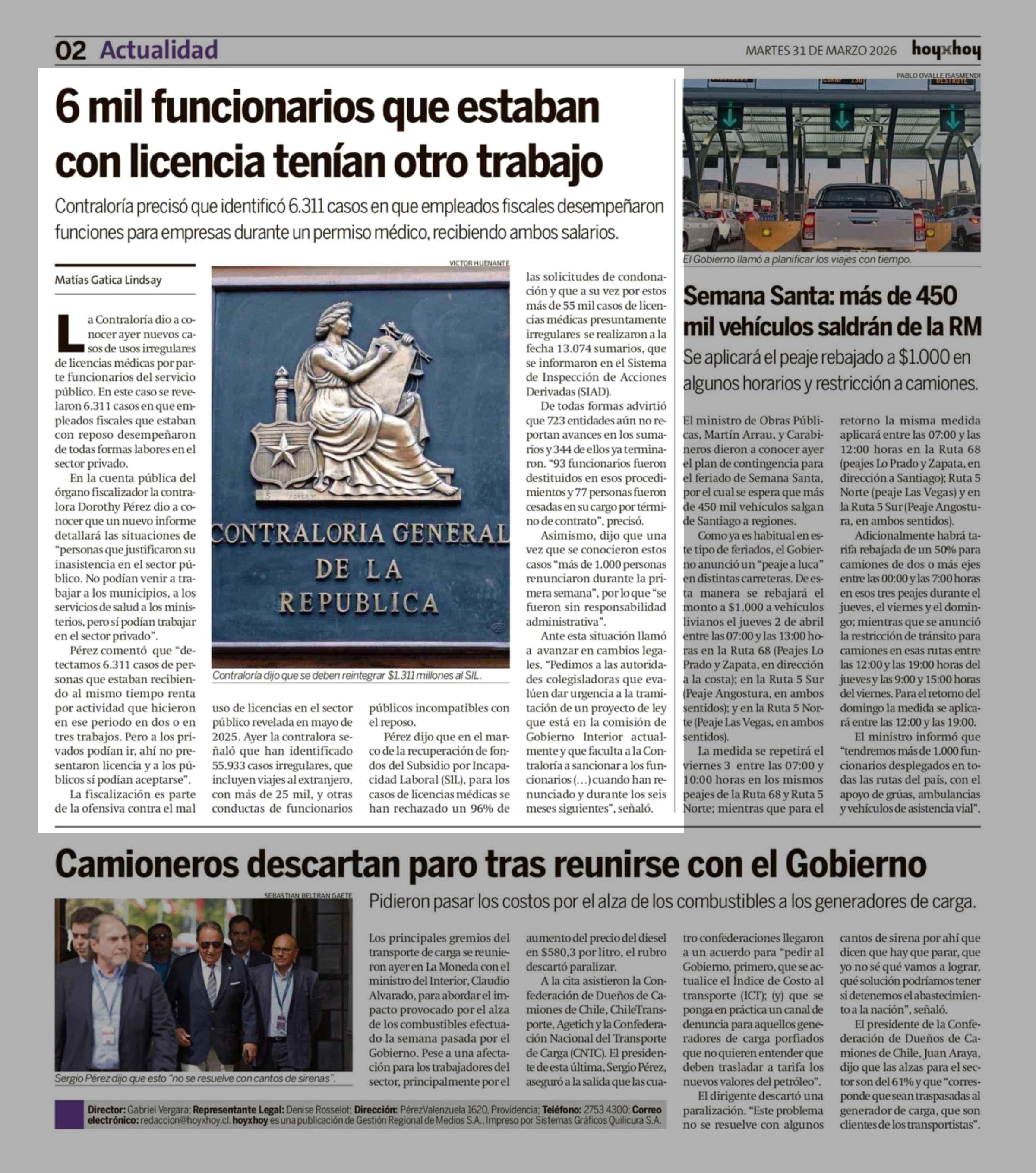6 Mil funcionarios que estaban con licencia tenían otro trabajo 31-03-2026 Hoy x Hoy |