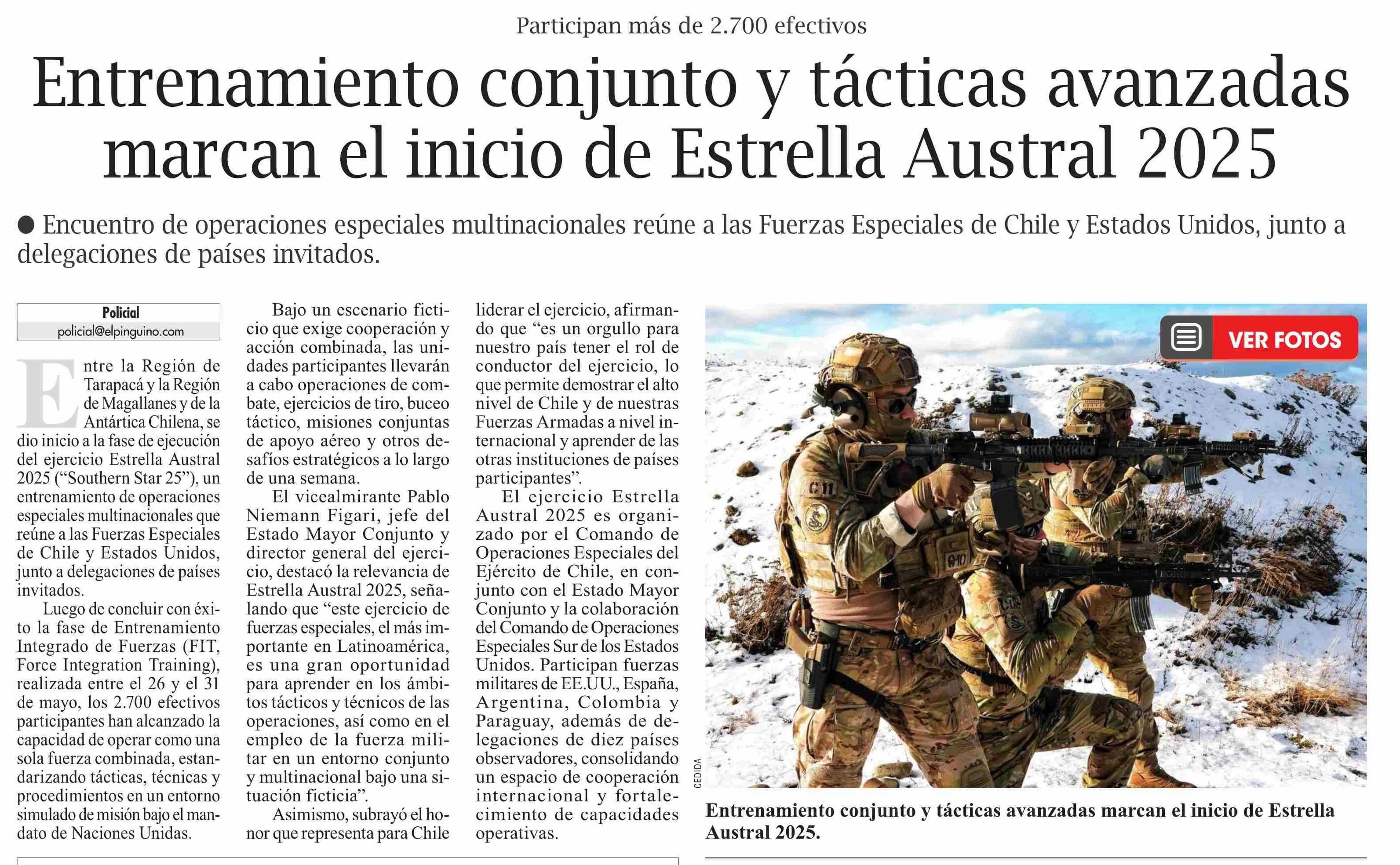 Entrenamiento conjunto y tácticas avanzadas marcan el inicio de Estrella Austral 2025 06-06-2025 El Pingüino |