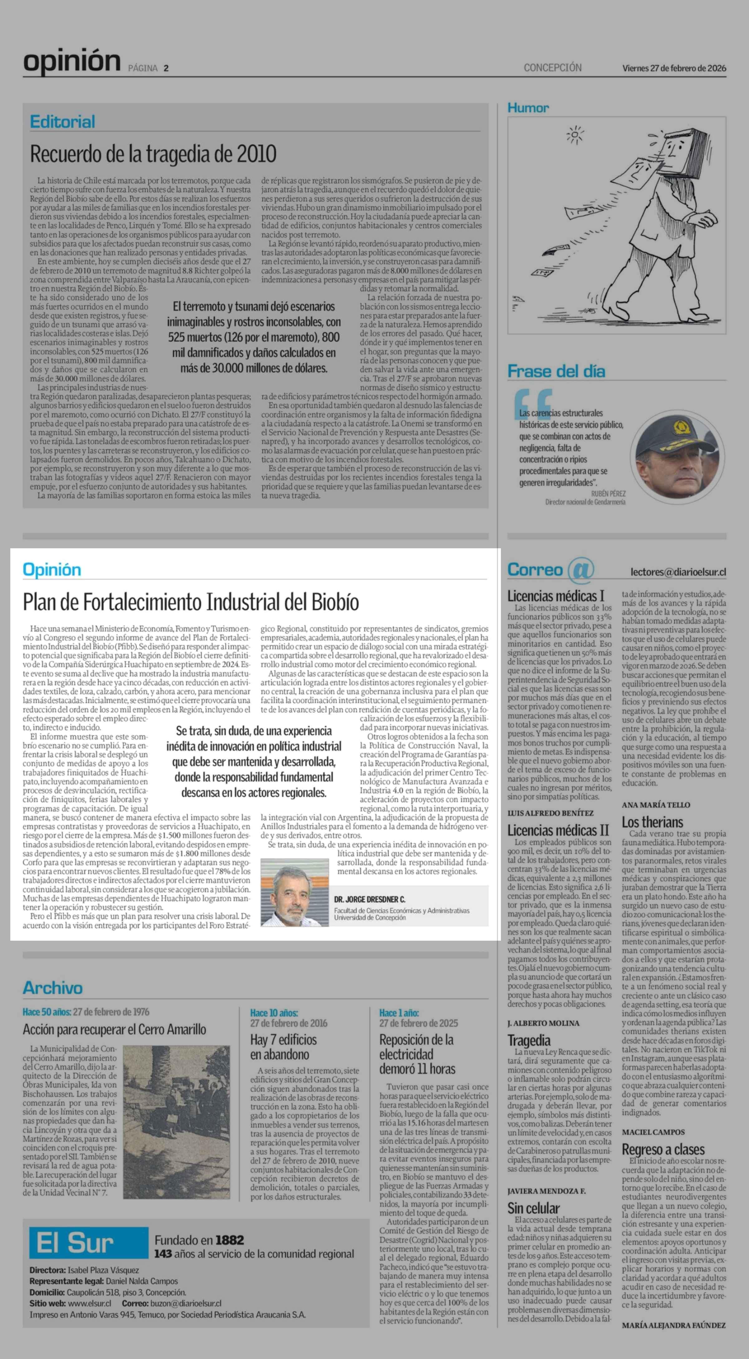 Fecha: 27-02-2026 Sector: Columnas de Opinión Región: Región del Bío-Bío