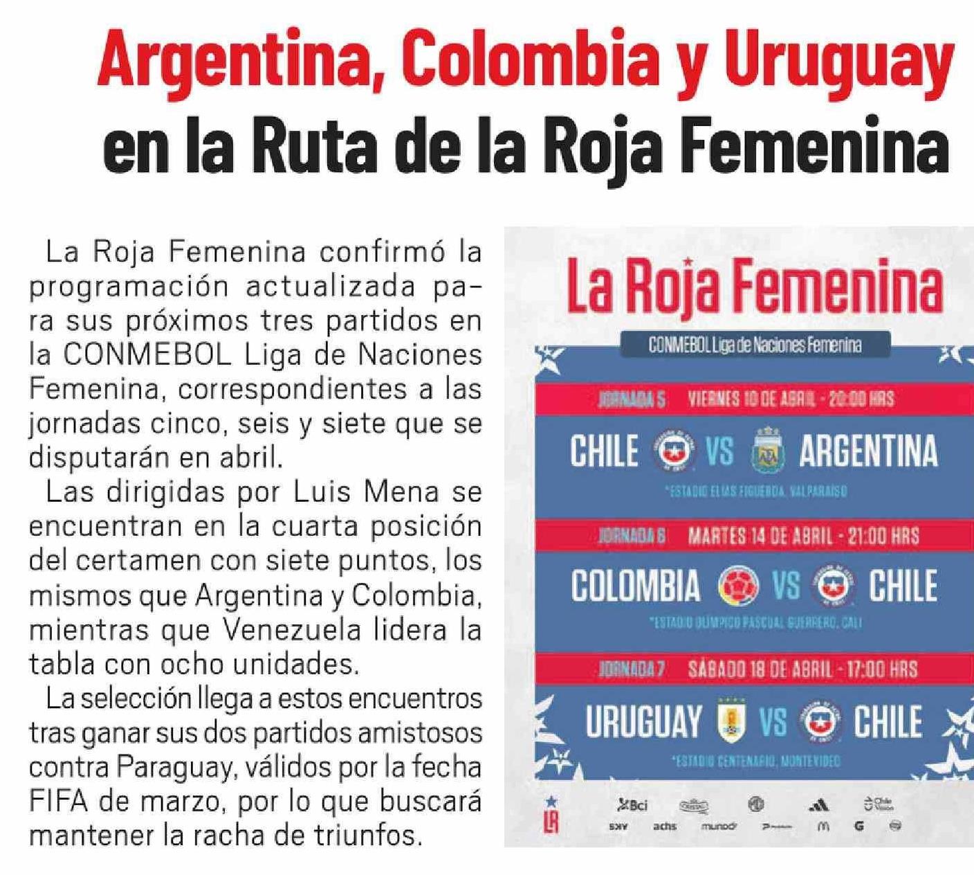 Argentina, Colombia y Uruguay en la Ruta de la Roja Femenina 12-03-2026 El Día |