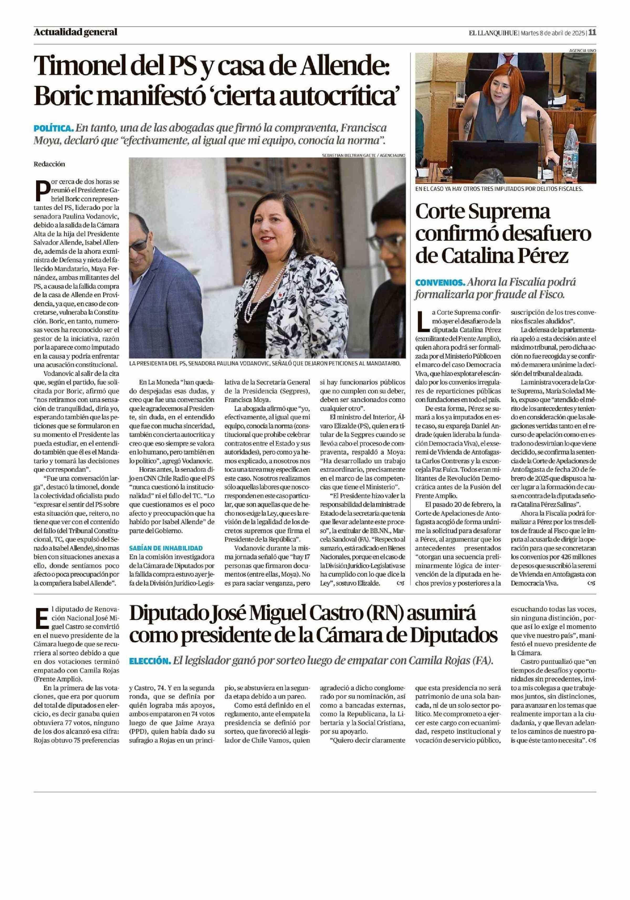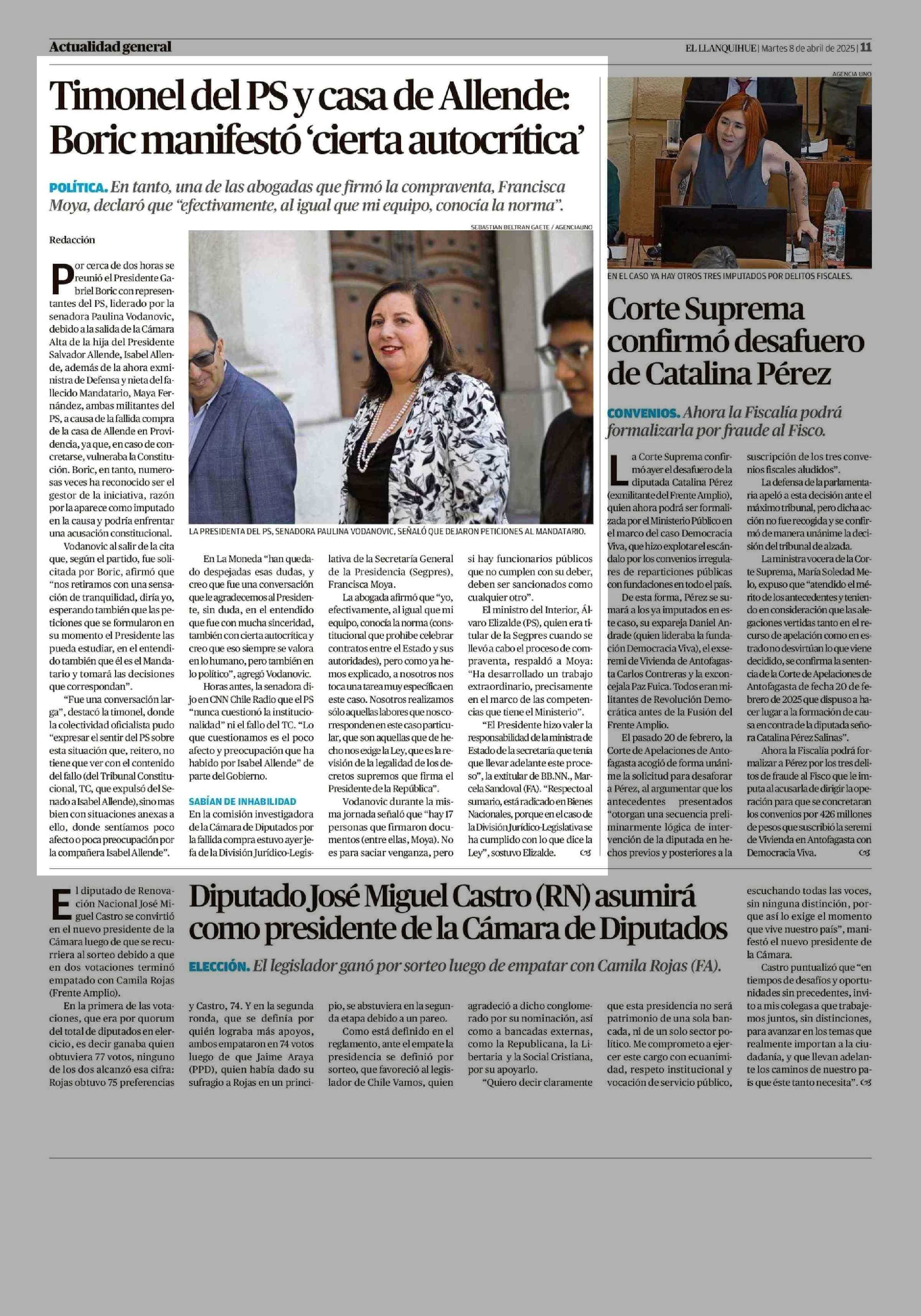 Timonel del PS y casa de Allende: Boric manifestó “cierta autocrítica 08-04-2025 El Llanquihue |