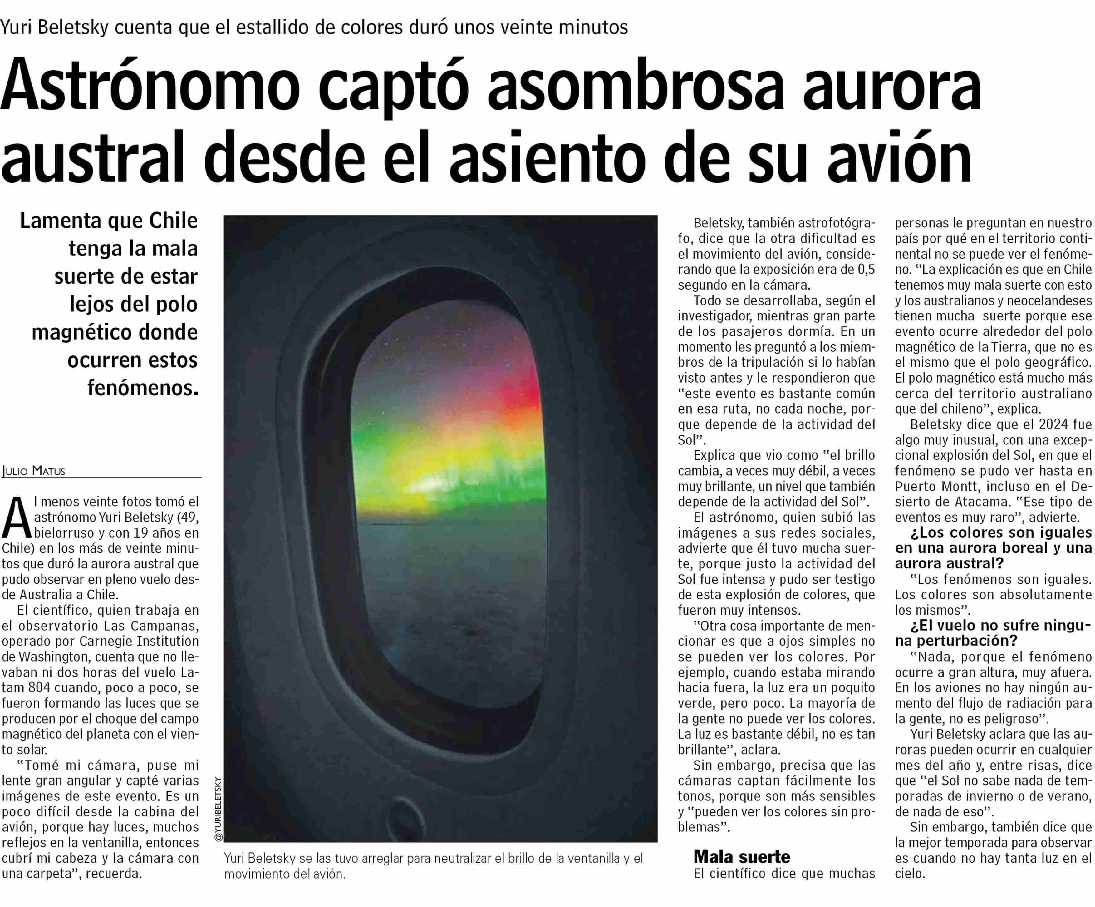 Astrónomo captó asombrosa aurora austral desde el asiento de su avión 04-06-2025 Las Últimas Noticias |