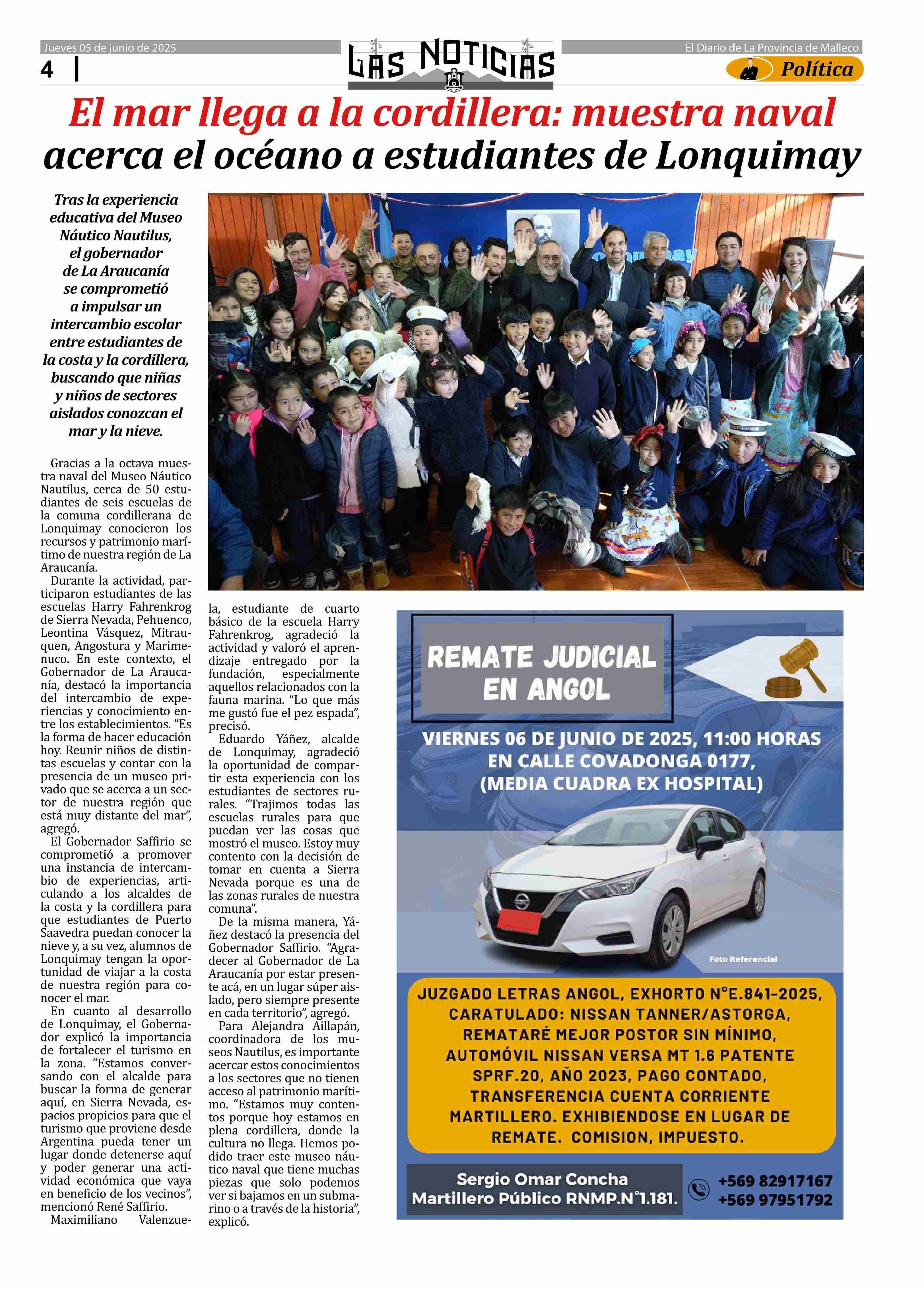 El mar llega a la cordillera: muestra naval acerca el océano a estudiantes de Lonquimay 05-06-2025 Las Noticias |