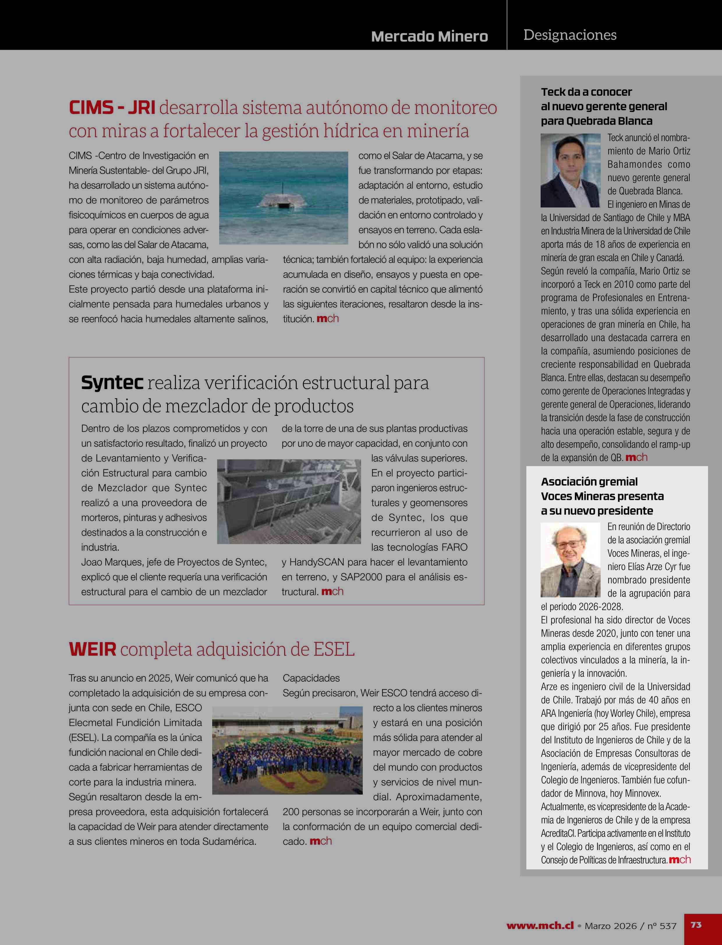 Asociación gremial Voces Mineras presenta a su nuevo presidente 19-03-2026 Revista Minería Chilena |