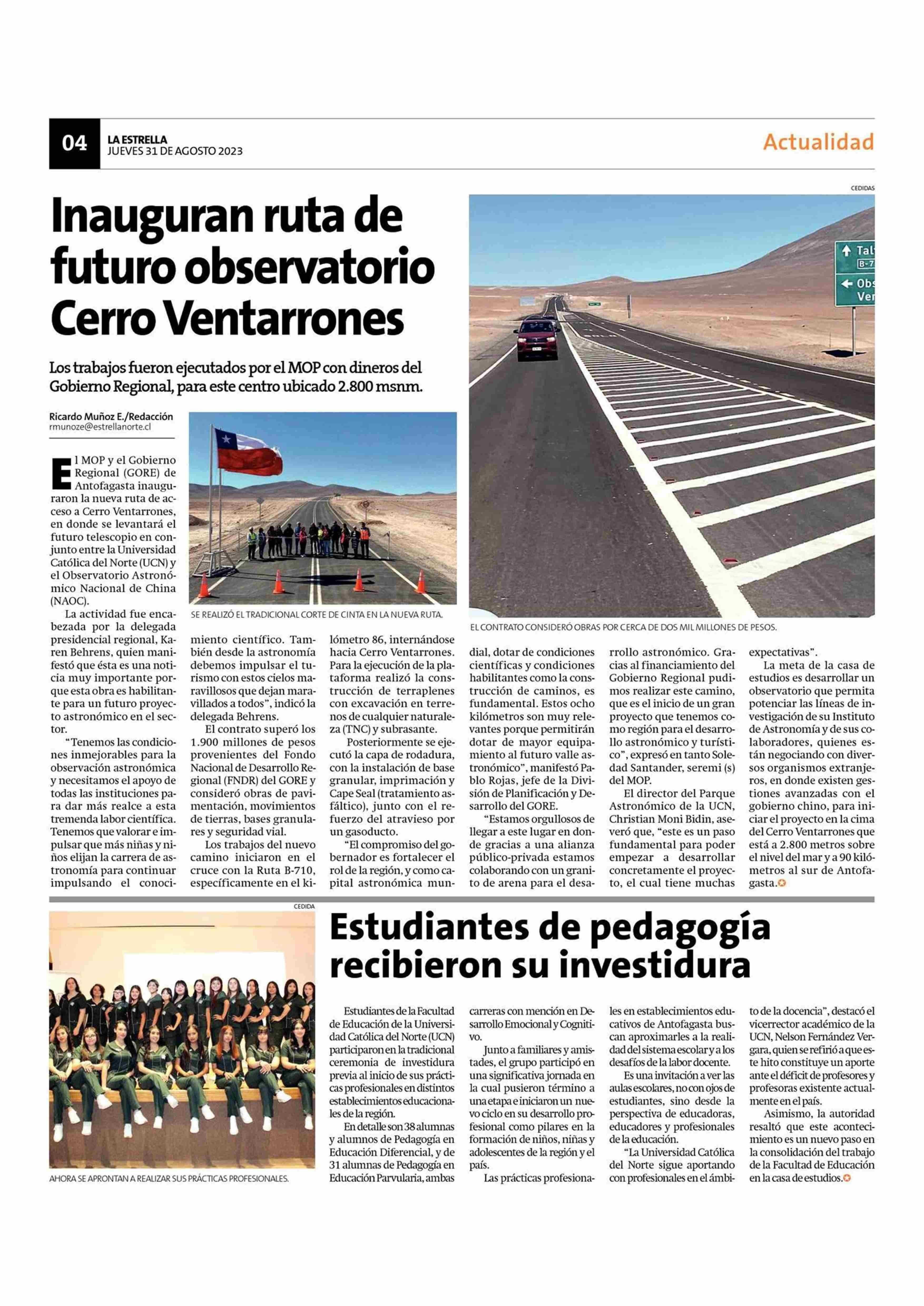 | Fecha: | 31-08-2023 | Sector: | Noticia general | Región: | Región de Antofagasta |
