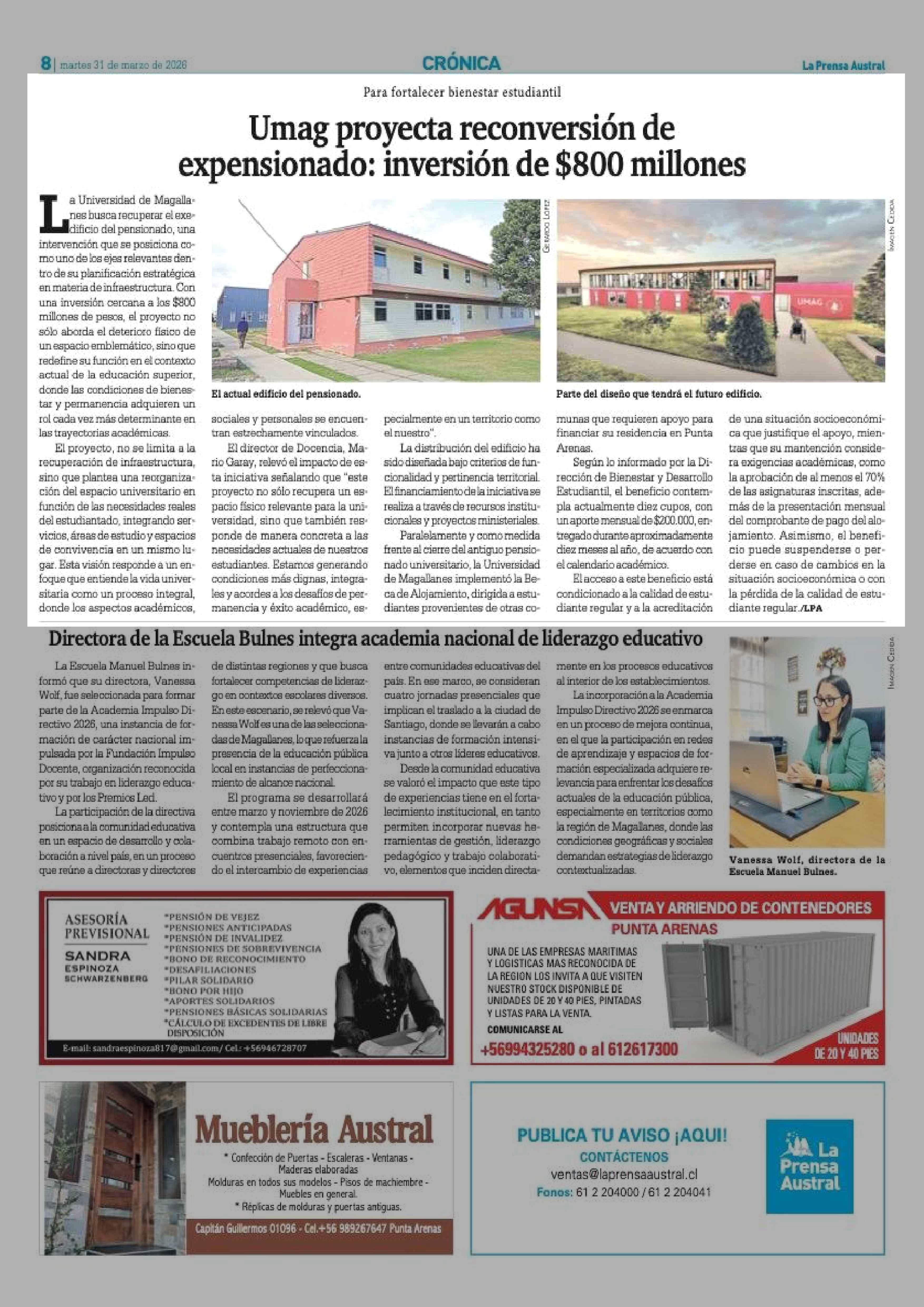 Umag proyecta reconversión de expensionado: inversión de $800 millones 31-03-2026 La Prensa Austral |