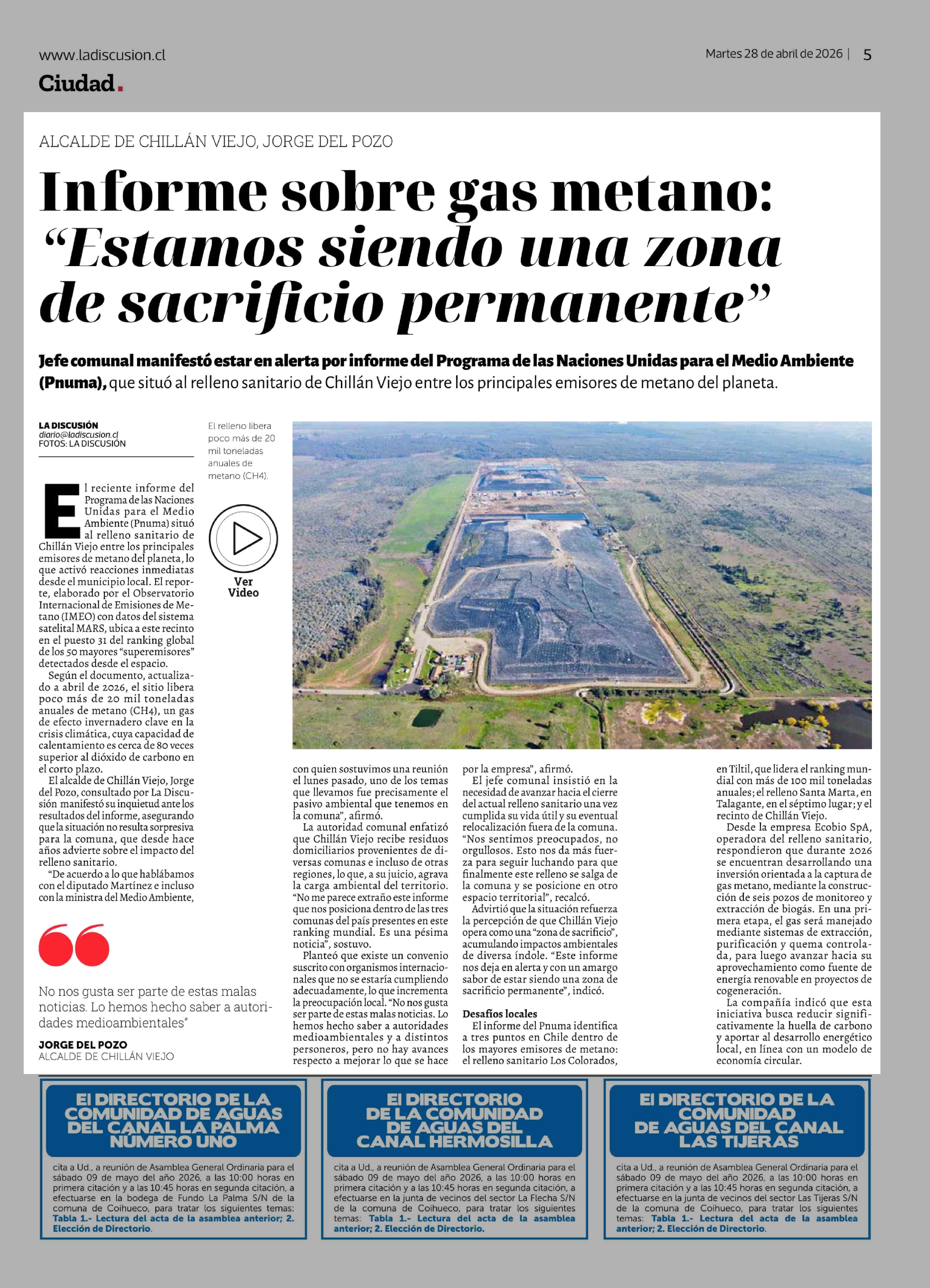 Fecha: 28-04-2026 Sector: Noticia general Región: Región del Ñuble