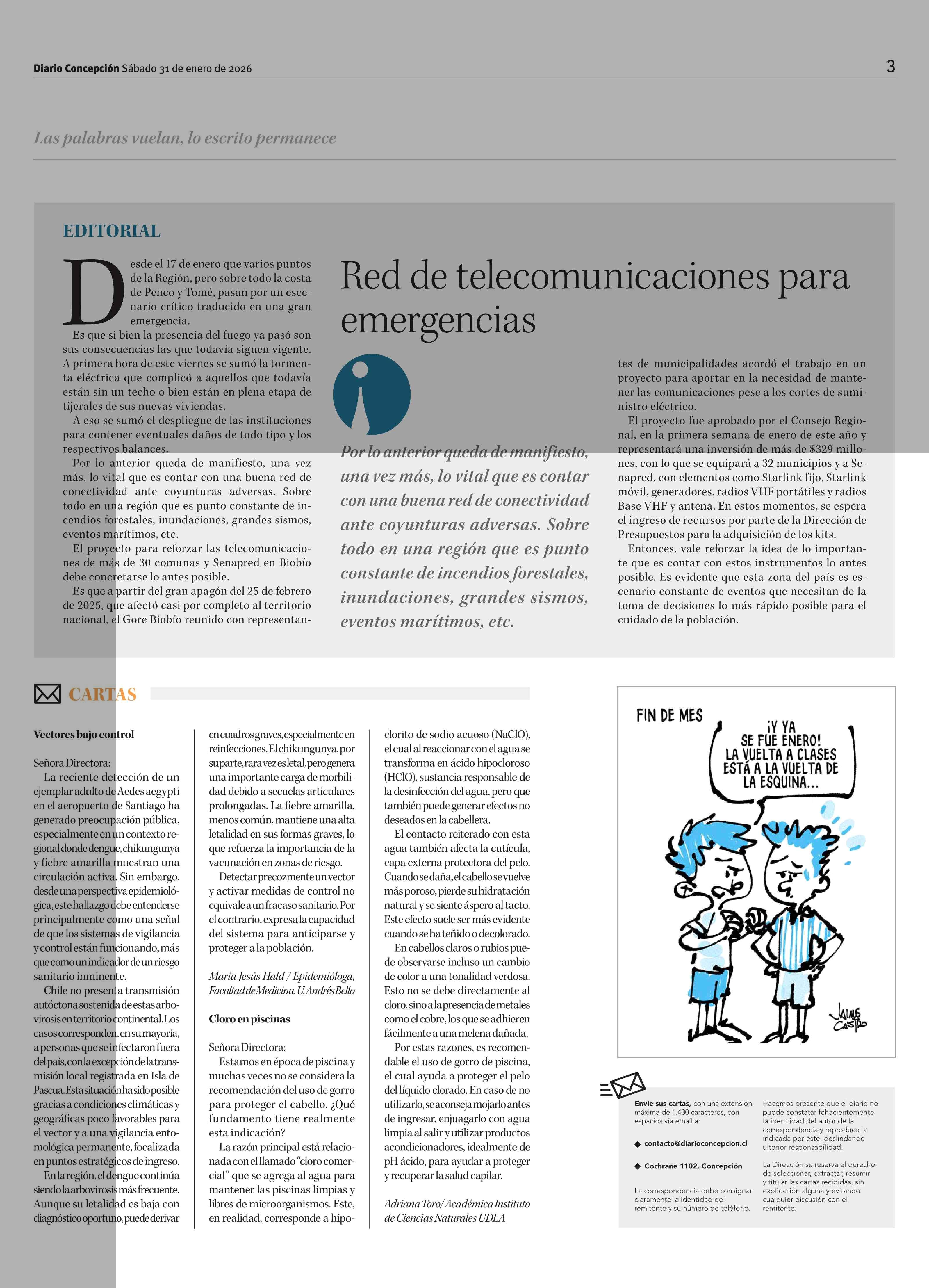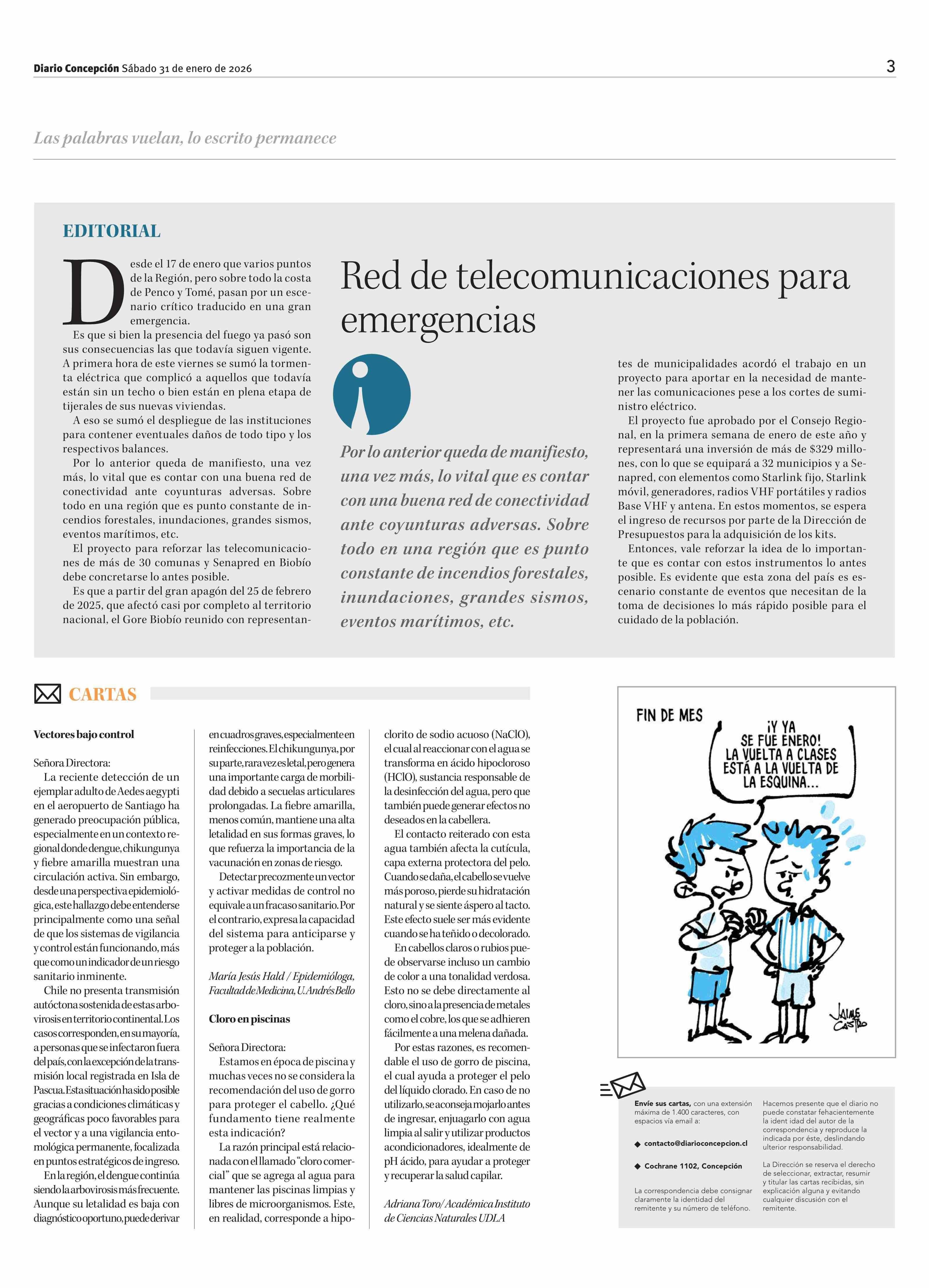 Editorial: Red de telecomunicaciones para emergencias 31-01-2026 Diario Concepción |