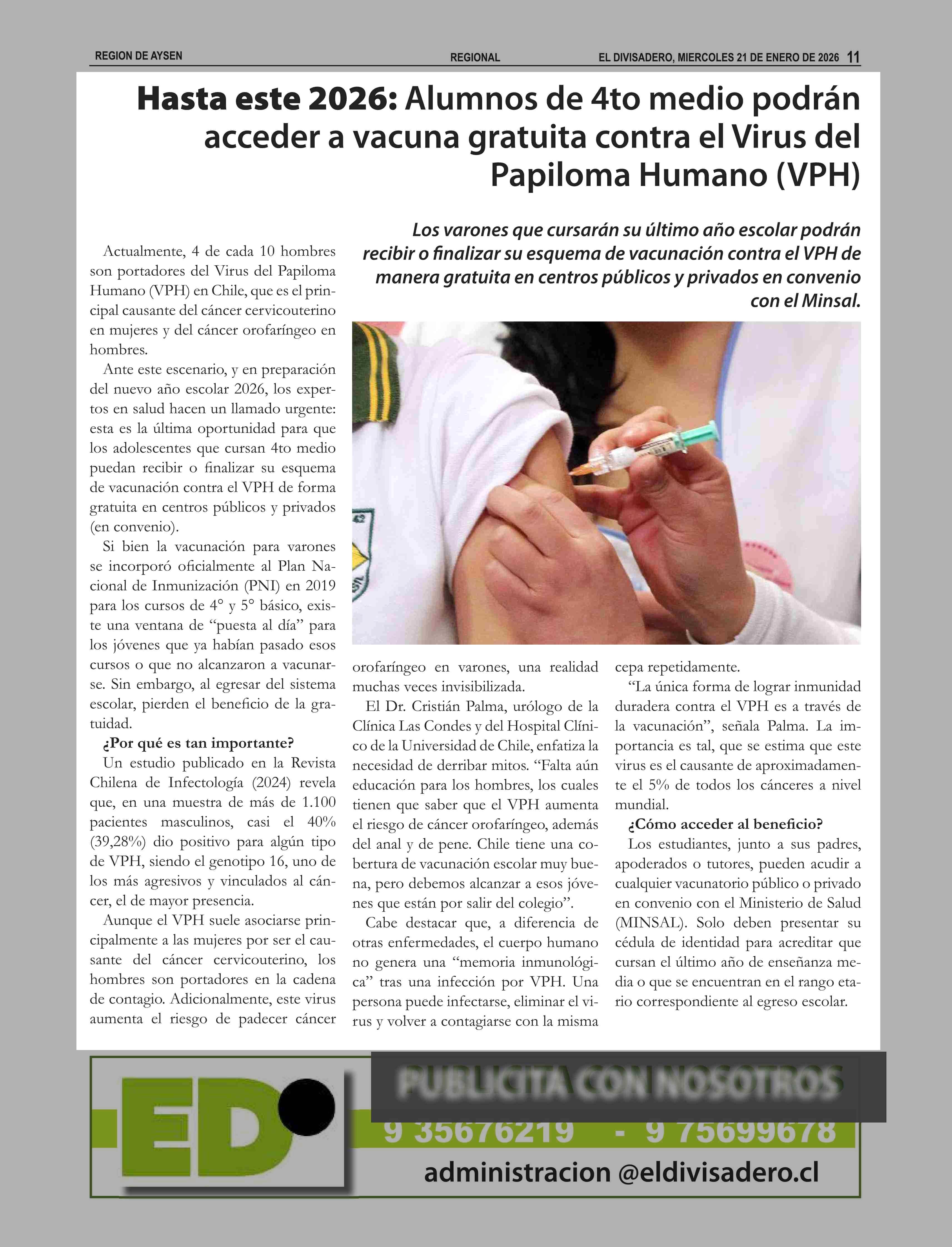 Título: Hasta este 2026: Alumnos de 4to medio podrán acceder a vacuna gratuita contra el Virus del Papiloma Humano (VPH)