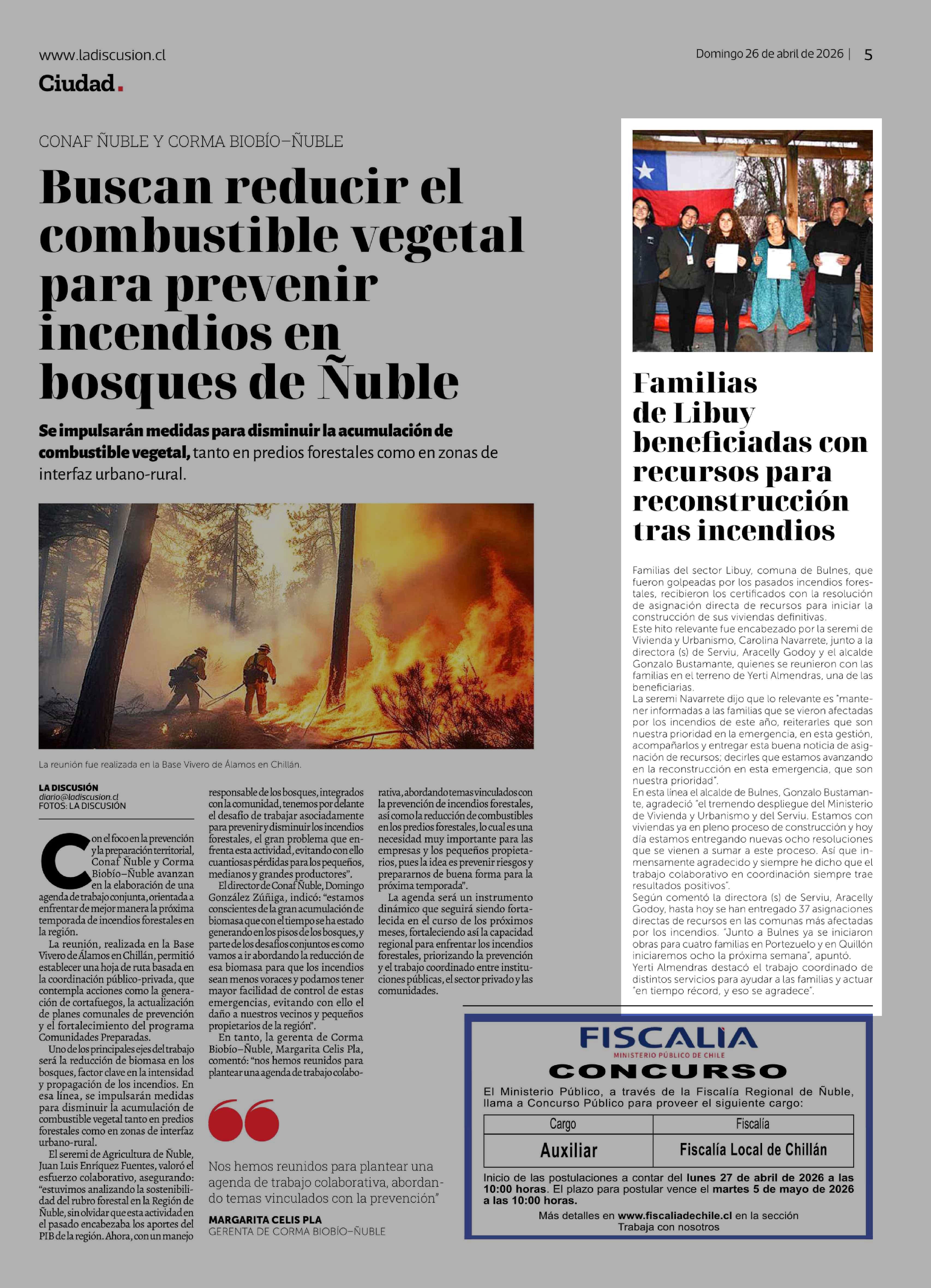 | Fecha: | 26-04-2026 | Sector: | Noticia general | Región: | Región del Ñuble |