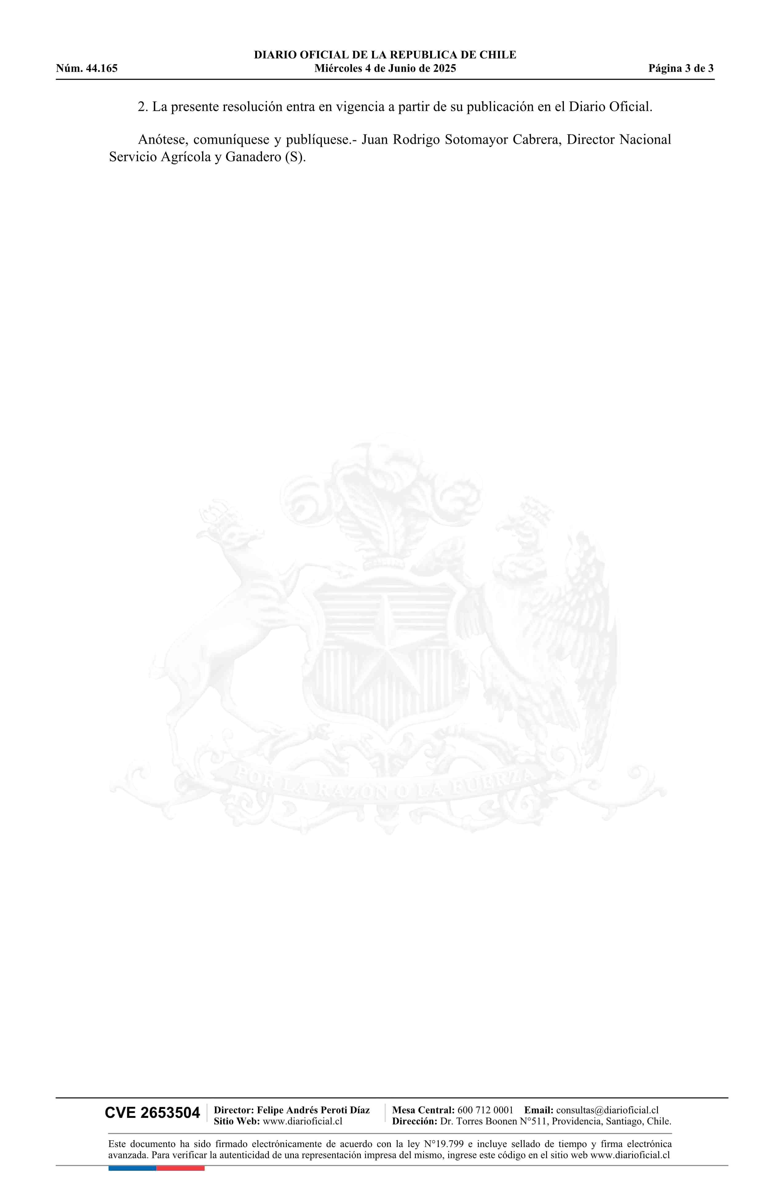 | Título: | Resolución exenta número 3.874, de 2025.- Establece medidas sanitarias aplicadas sobre la República Federativa de Brasil, en todo su territorio, por brote de influenza aviar de alta patogenicidad en el estado de Río Grande Do Sul |