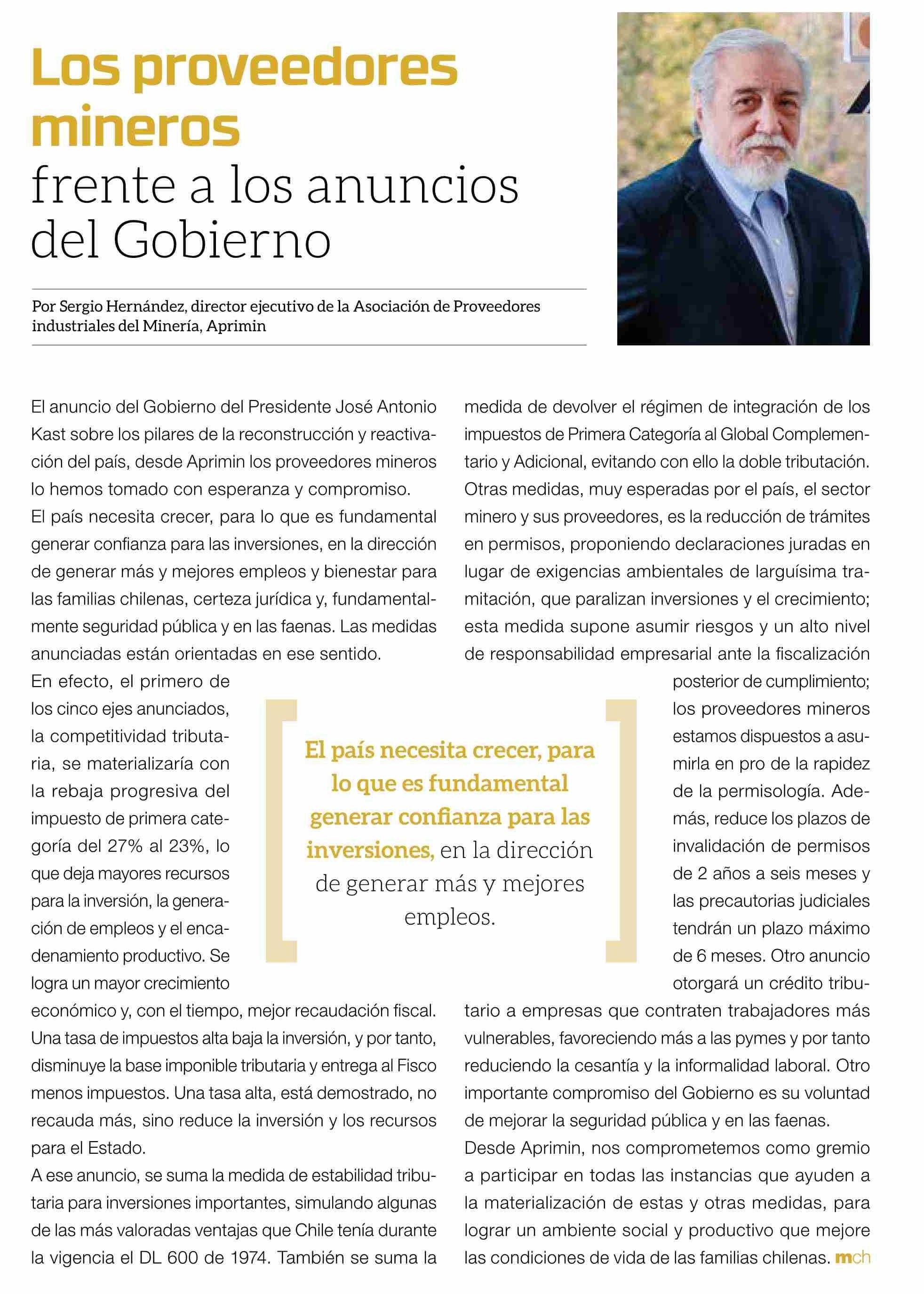 Título: COLUMNAS DE OPINIÓN: Los proveedores mineros frente a los anuncios del Gobierno