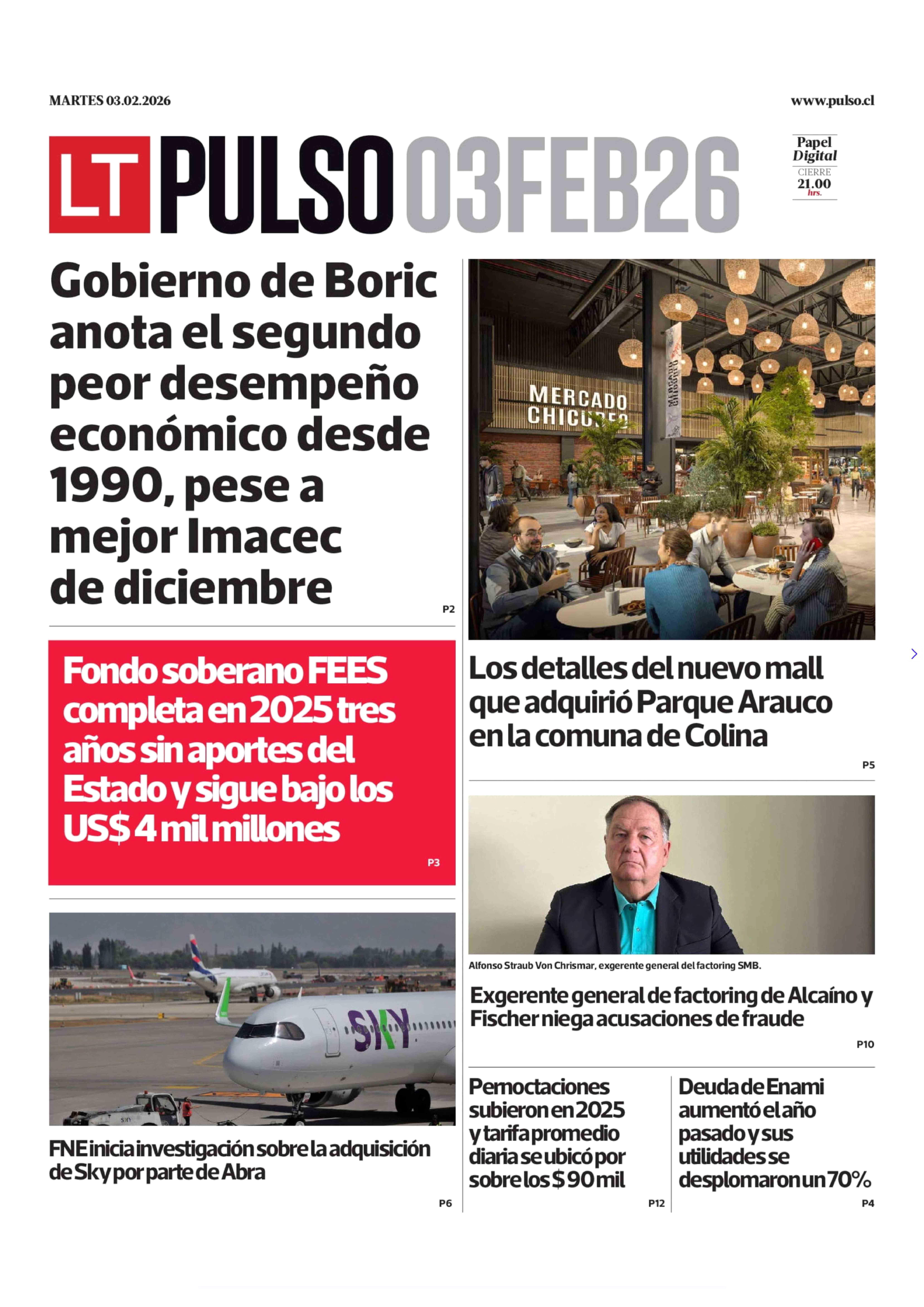PORTADA LA TERCERA (PULSO) CHILE 03-02-2026 La Tercera |