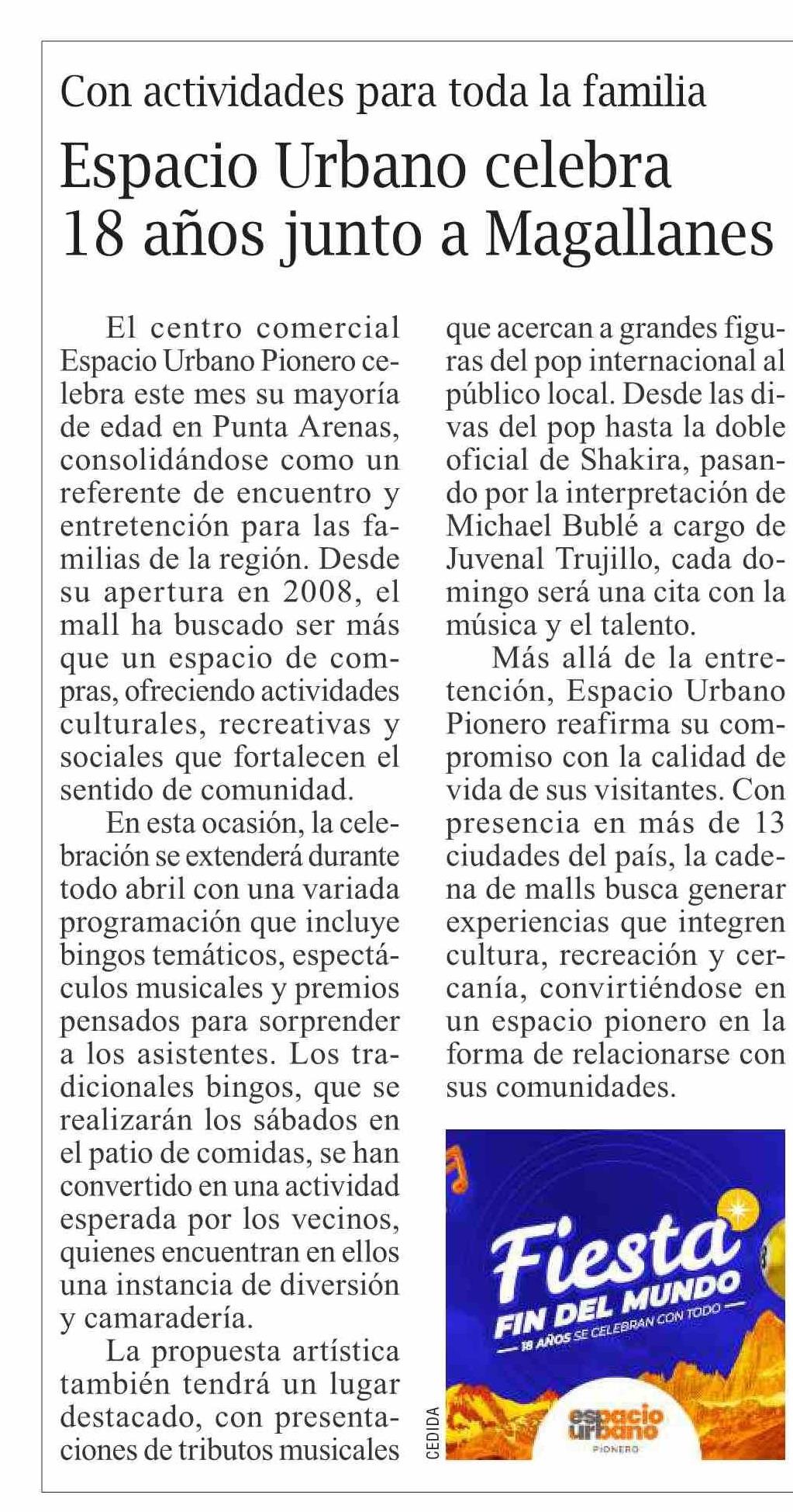 | Título: | Espacio Urbano celebra 18 años junto a Magallanes |
