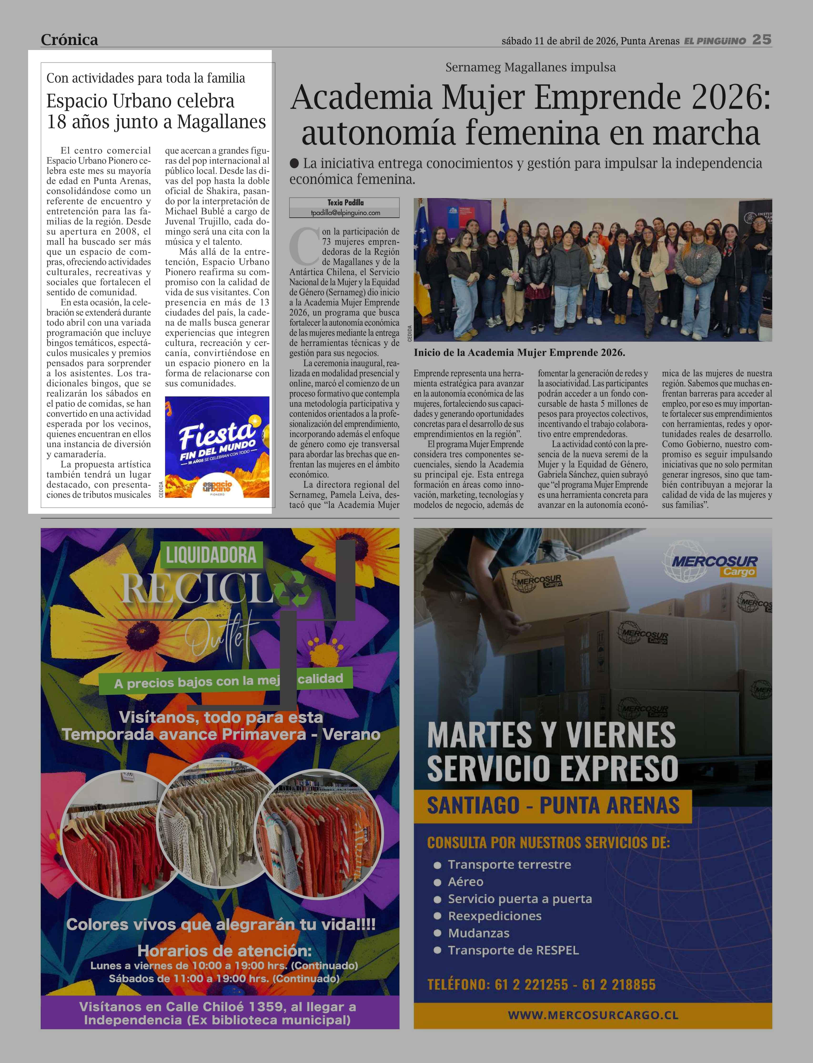 Espacio Urbano celebra 18 años junto a Magallanes 11-04-2026 El Pingüino |