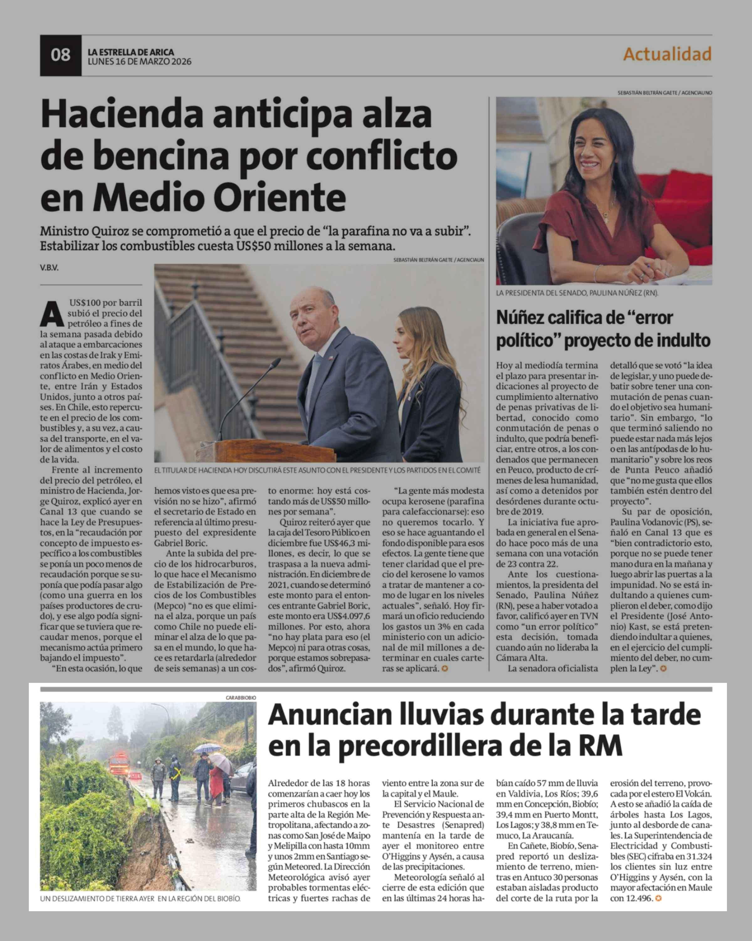 Fecha: 16-03-2026 Sector: Noticia general Región: Región de Arica y Parinacota