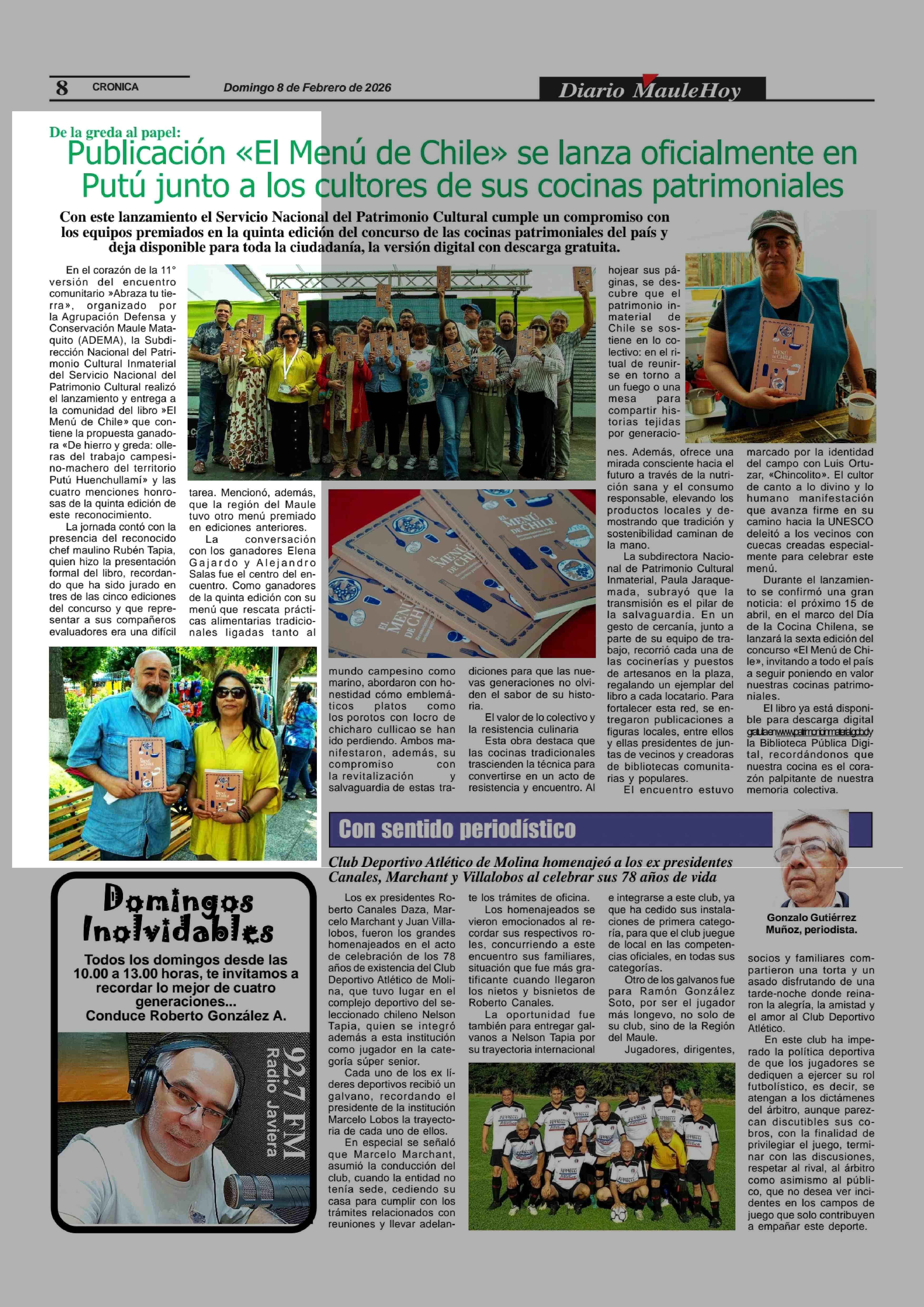Publicación «El Menú de Chile» se lanza oficialmente en Putú junto a los cultores de sus cocinas patrimoniales 08-02-2026 Maule Hoy |