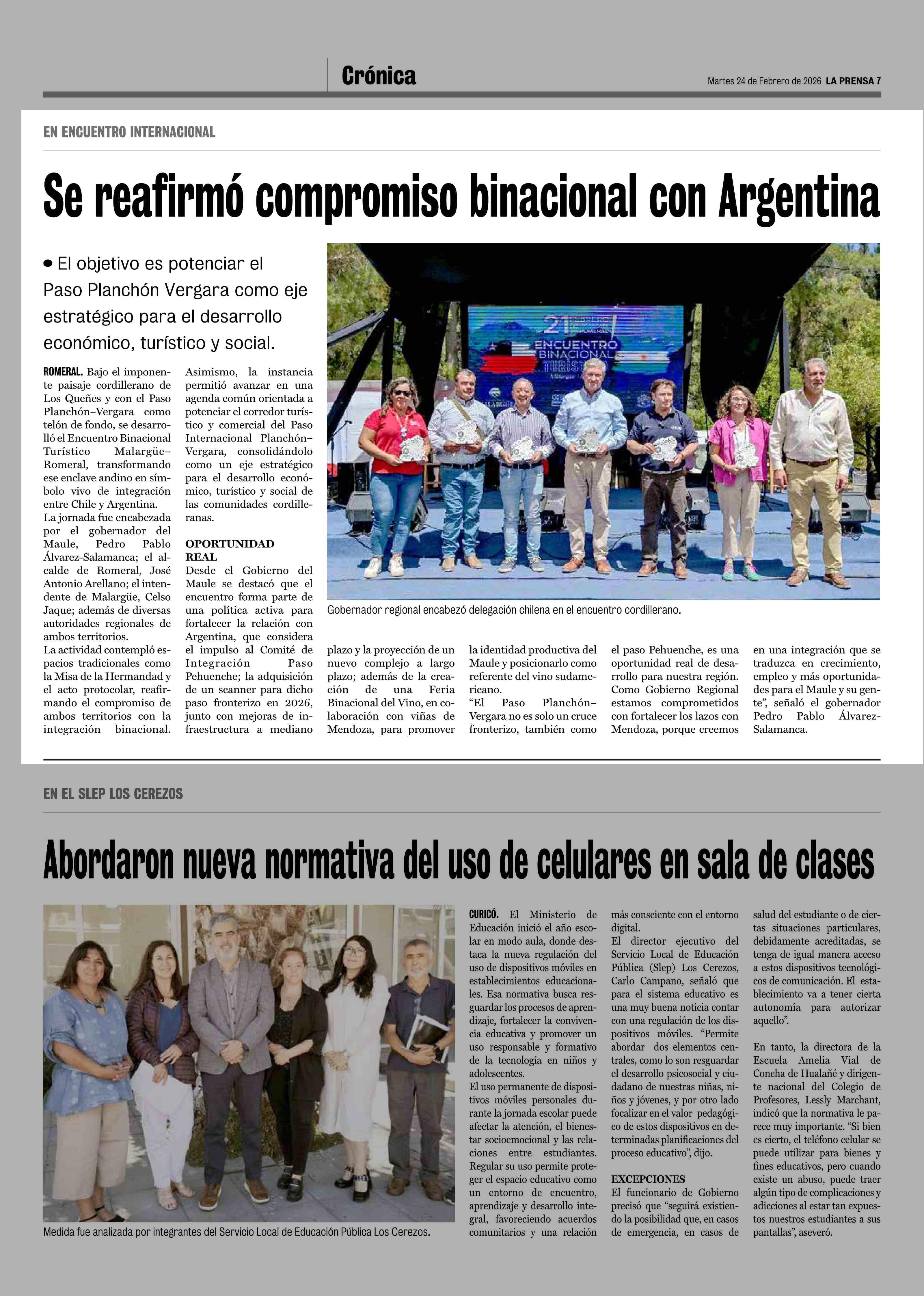 Se reafirmó compromiso binacional con Argentina 24-02-2026 La Prensa de Curicó |