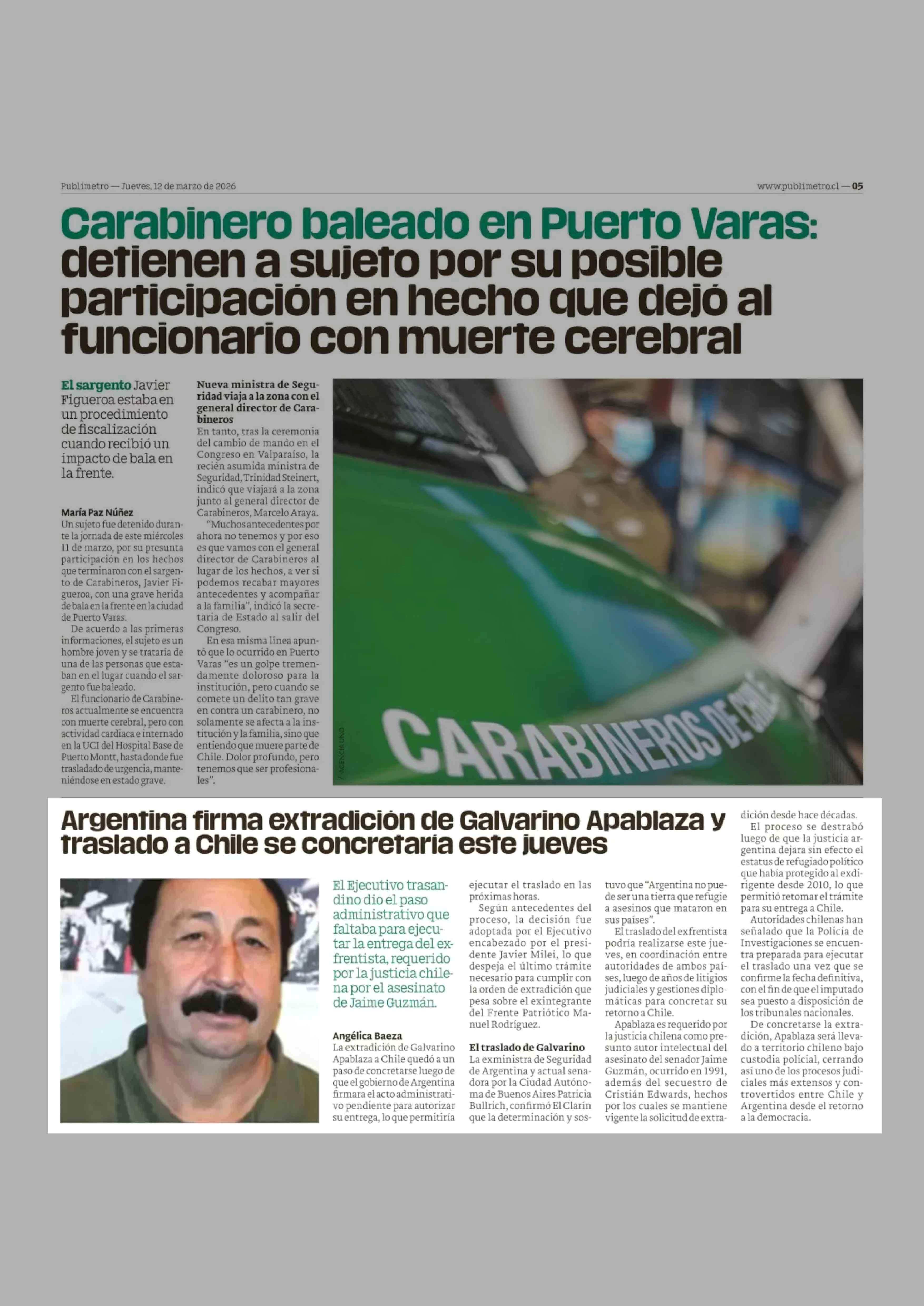 Argentina firma extradición de Galvarino Apablaza y traslado a Chile se concretaria este jueves 12-03-2026 Publimetro |