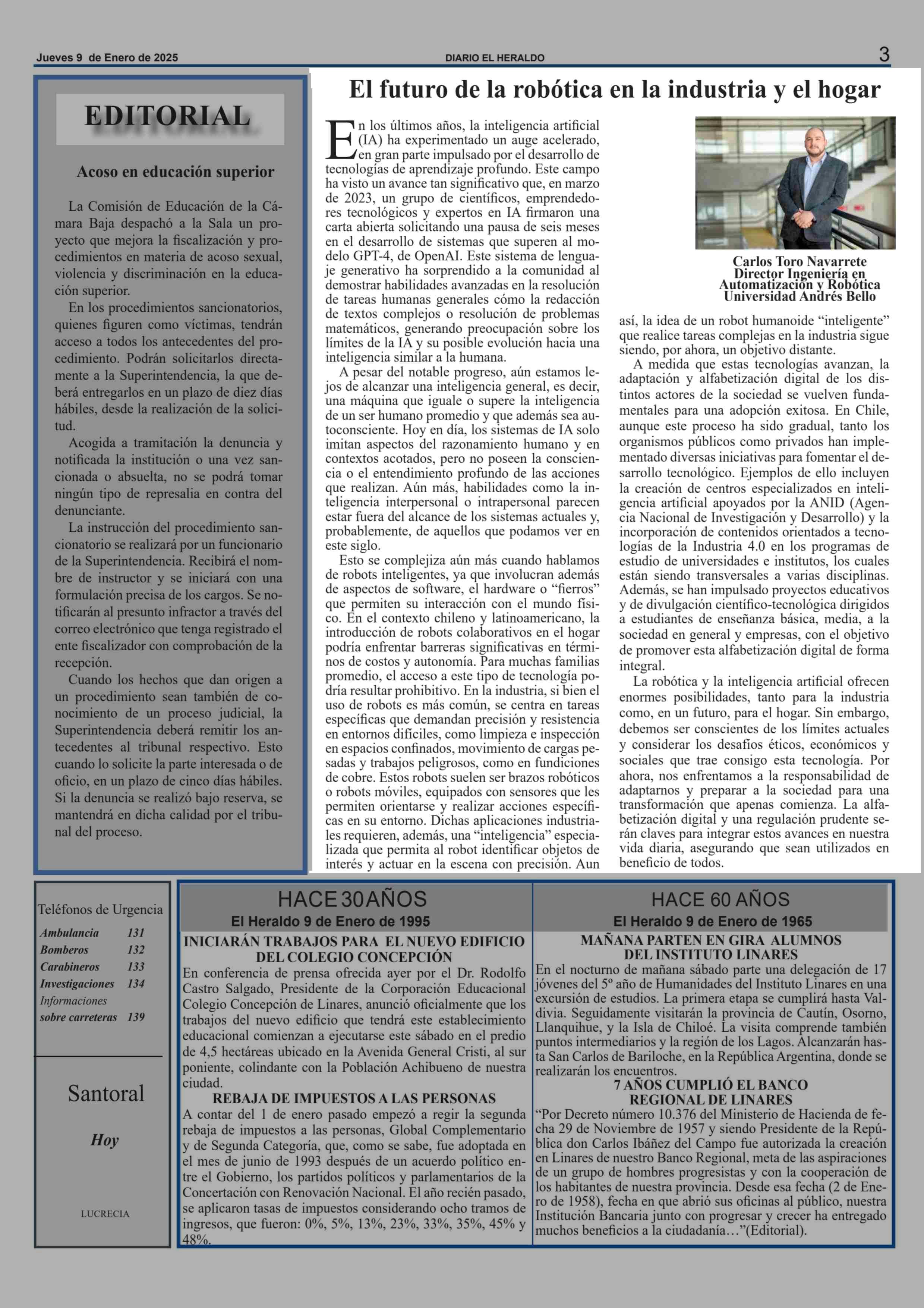 COLUMNAS DE OPINIÓN: El futuro de la robótica en la industria y el hogar 09-01-2025 El Heraldo |