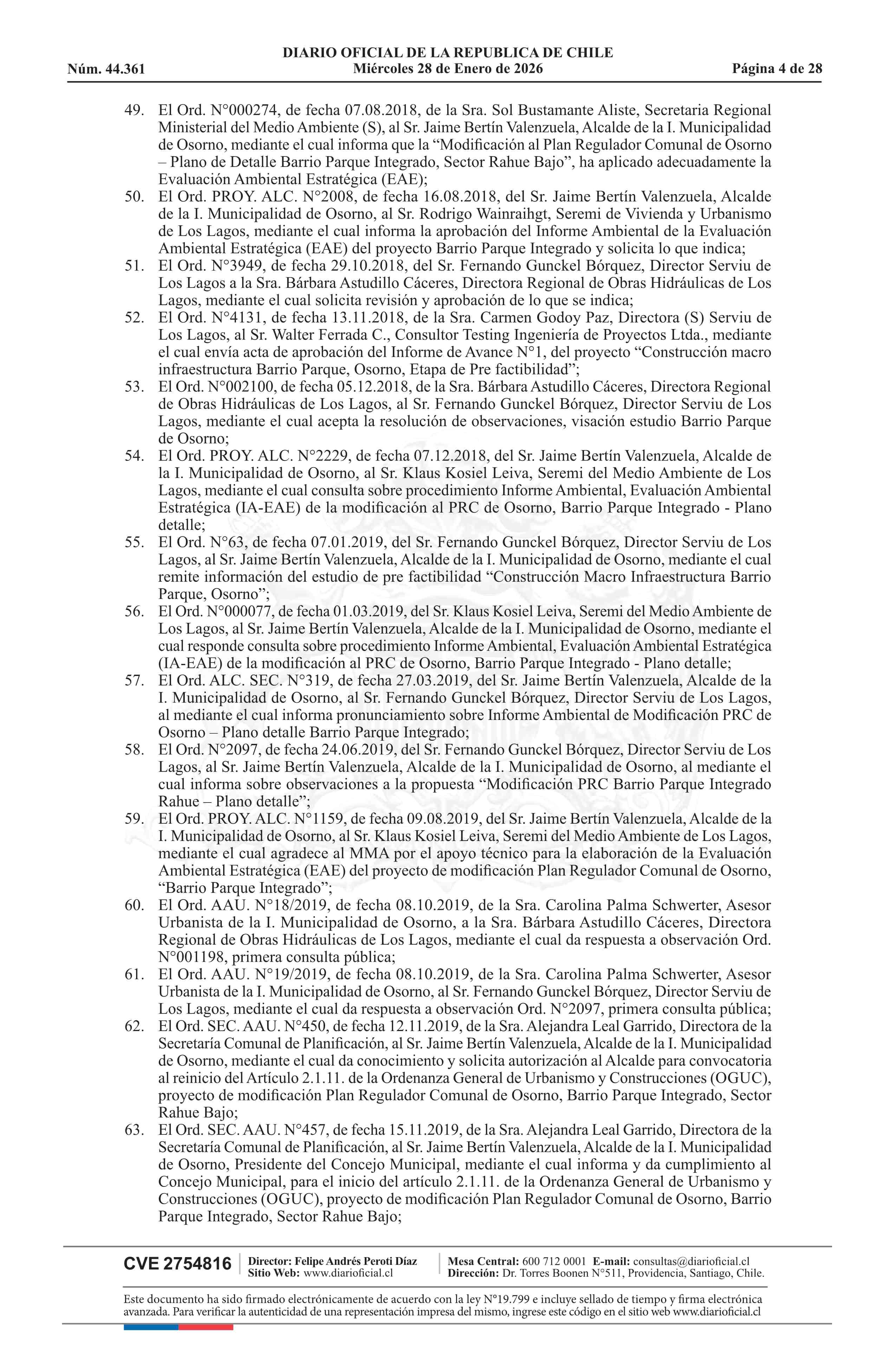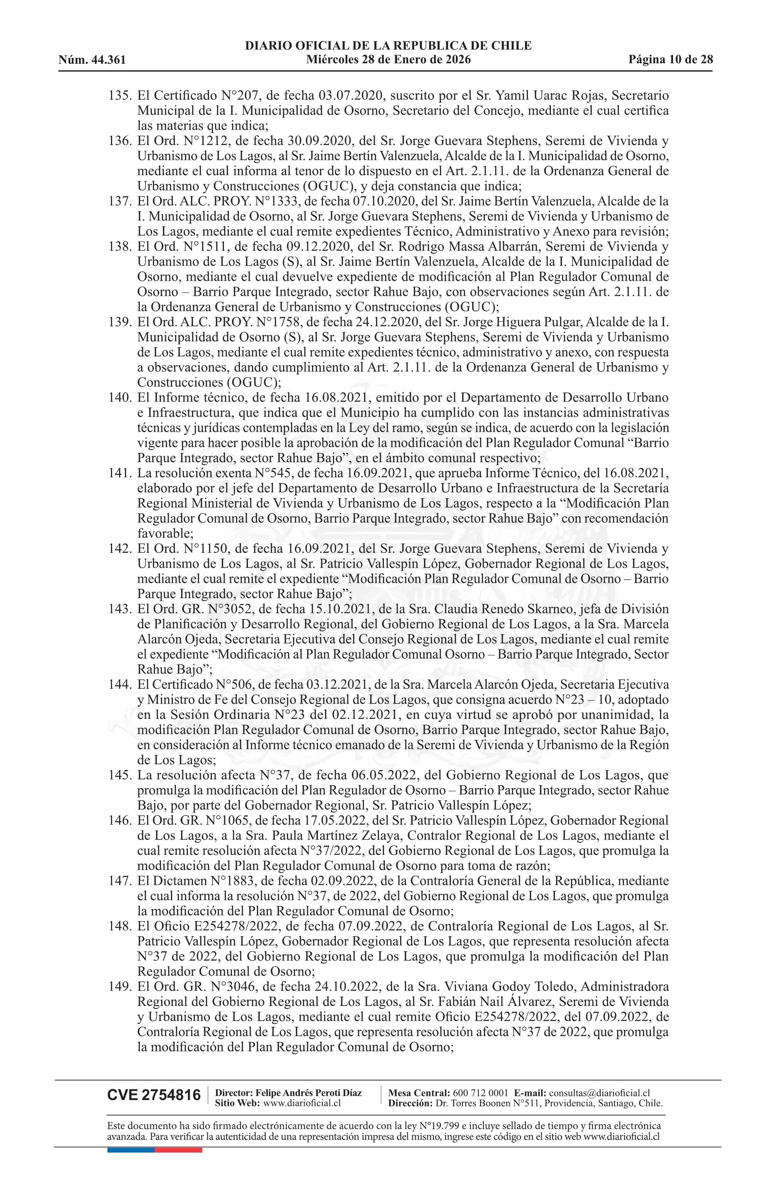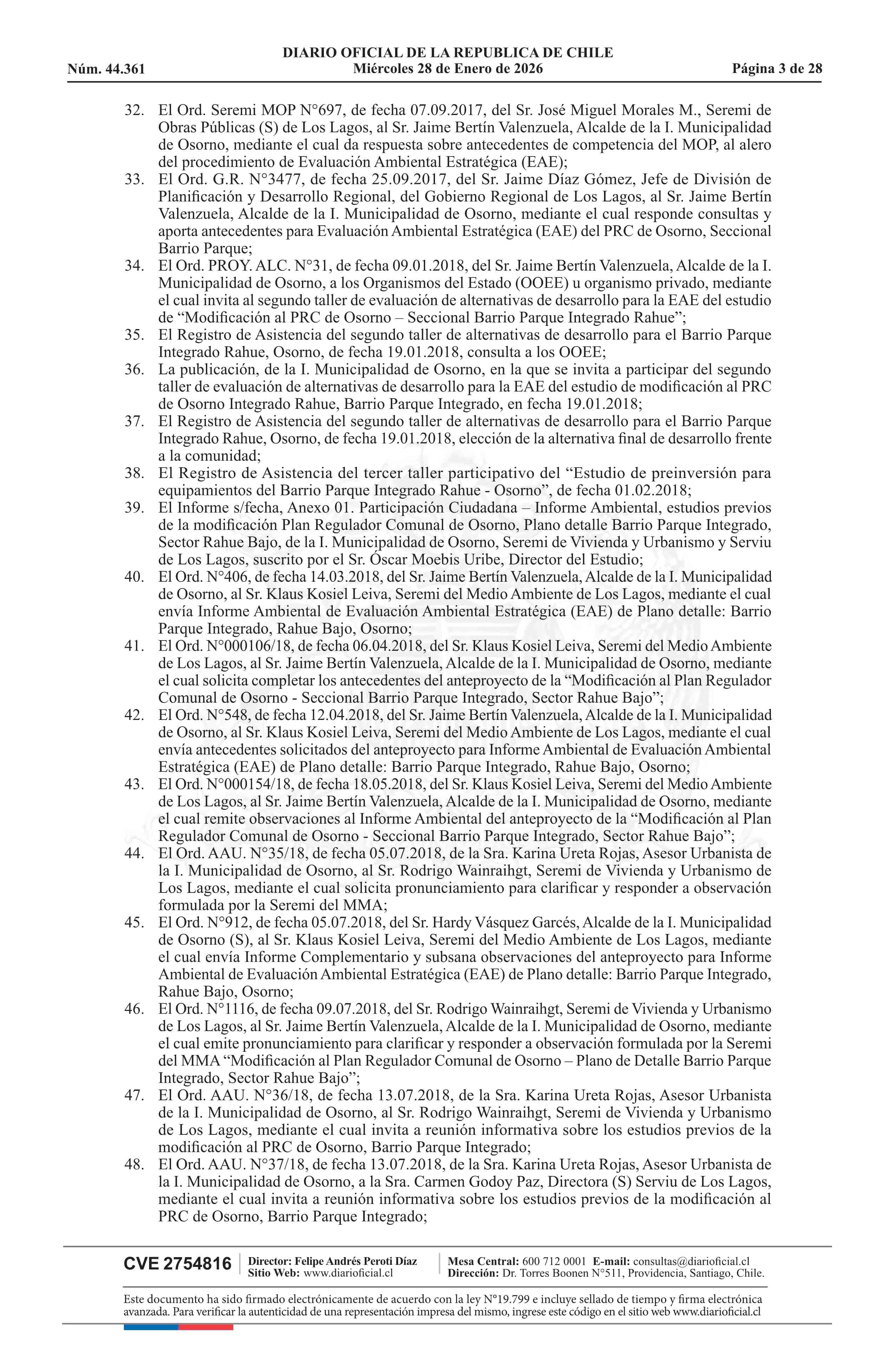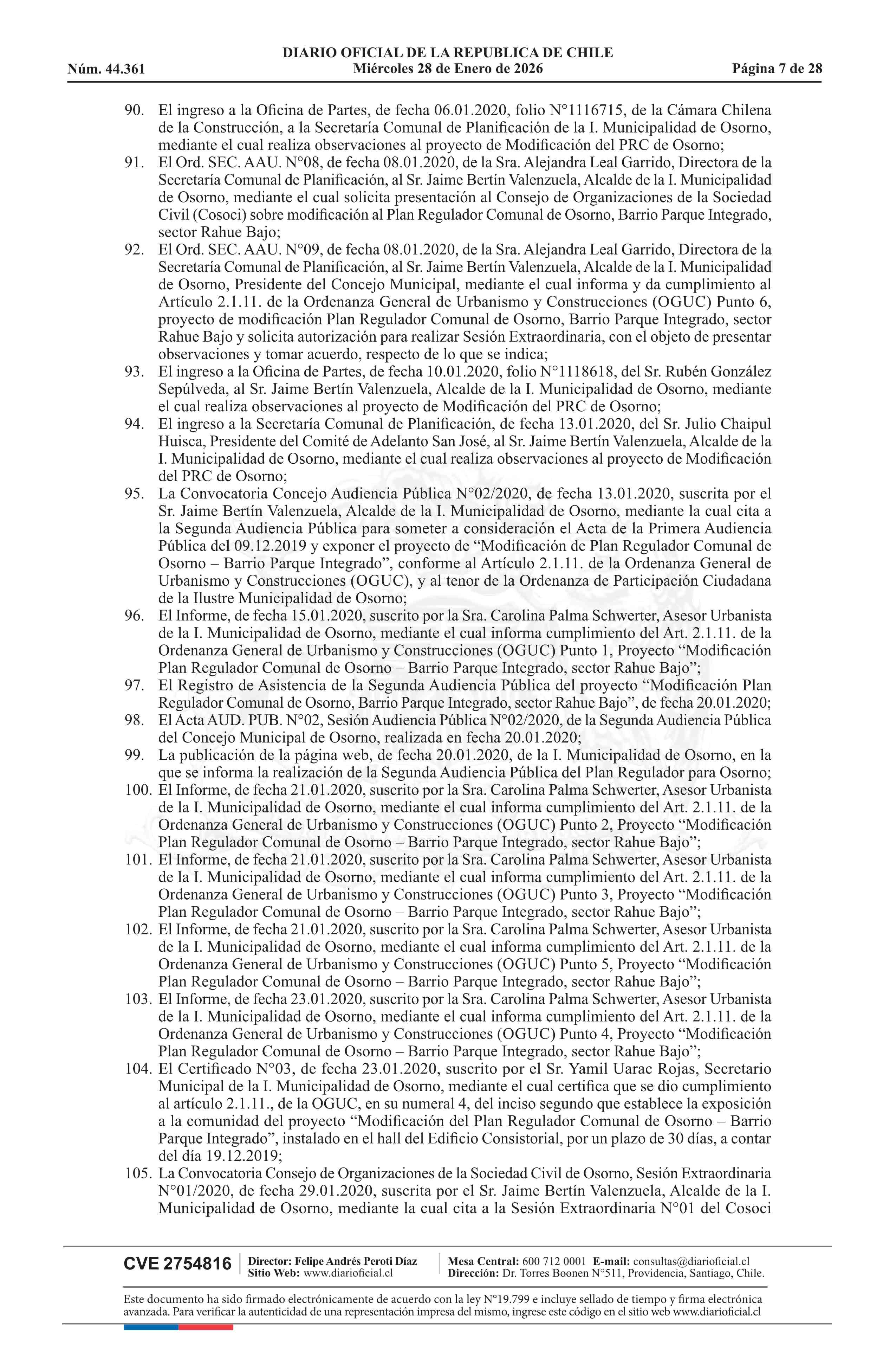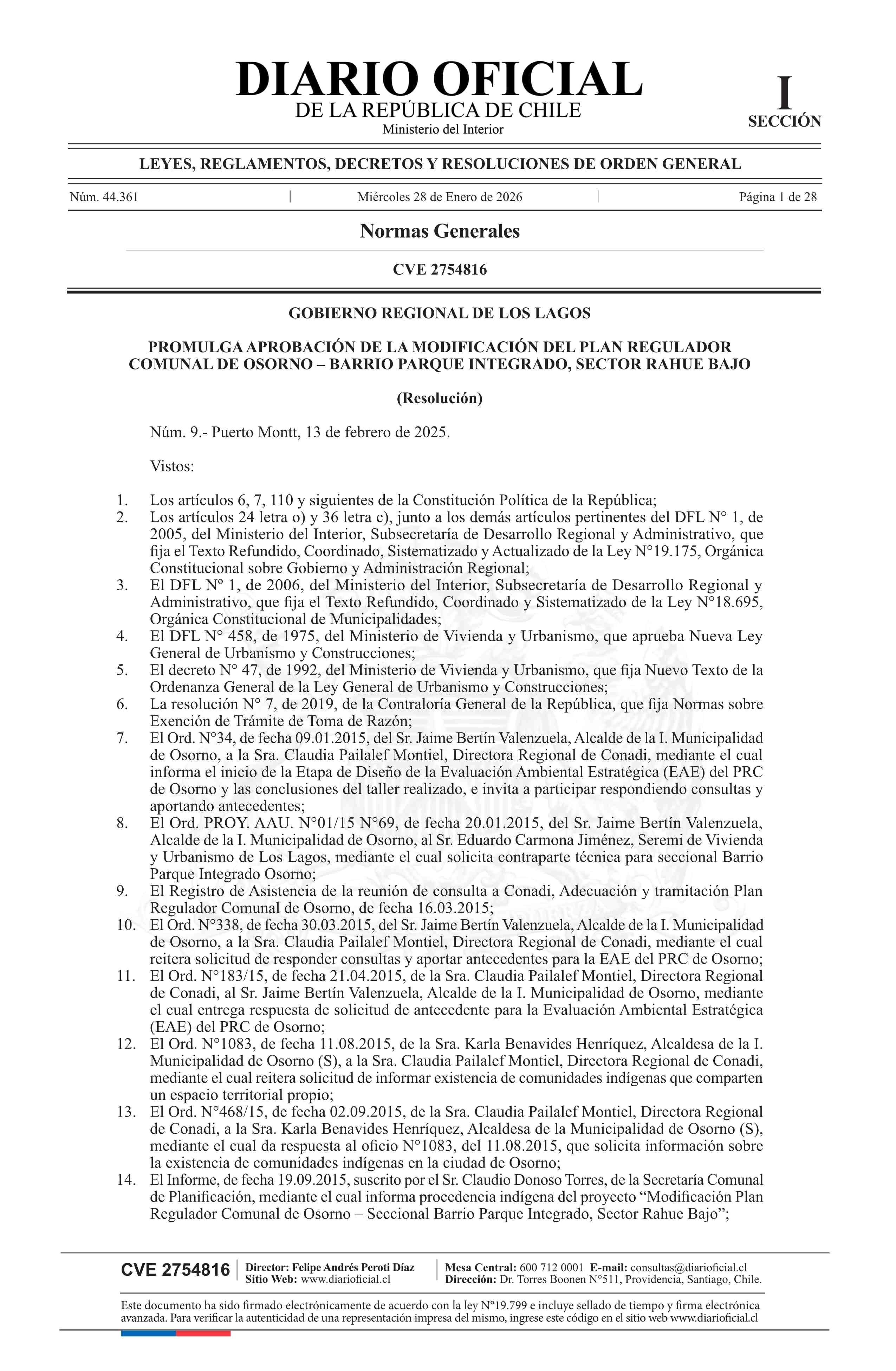 Resolución número 9, de 2025.- Promulga aprobación de la modificación del Plan Regulador Comunal de Osorno - Barrio Parque Integrado, Sector Rahue Bajo 28-01-2026 Diario Oficial Edición Electrónica |