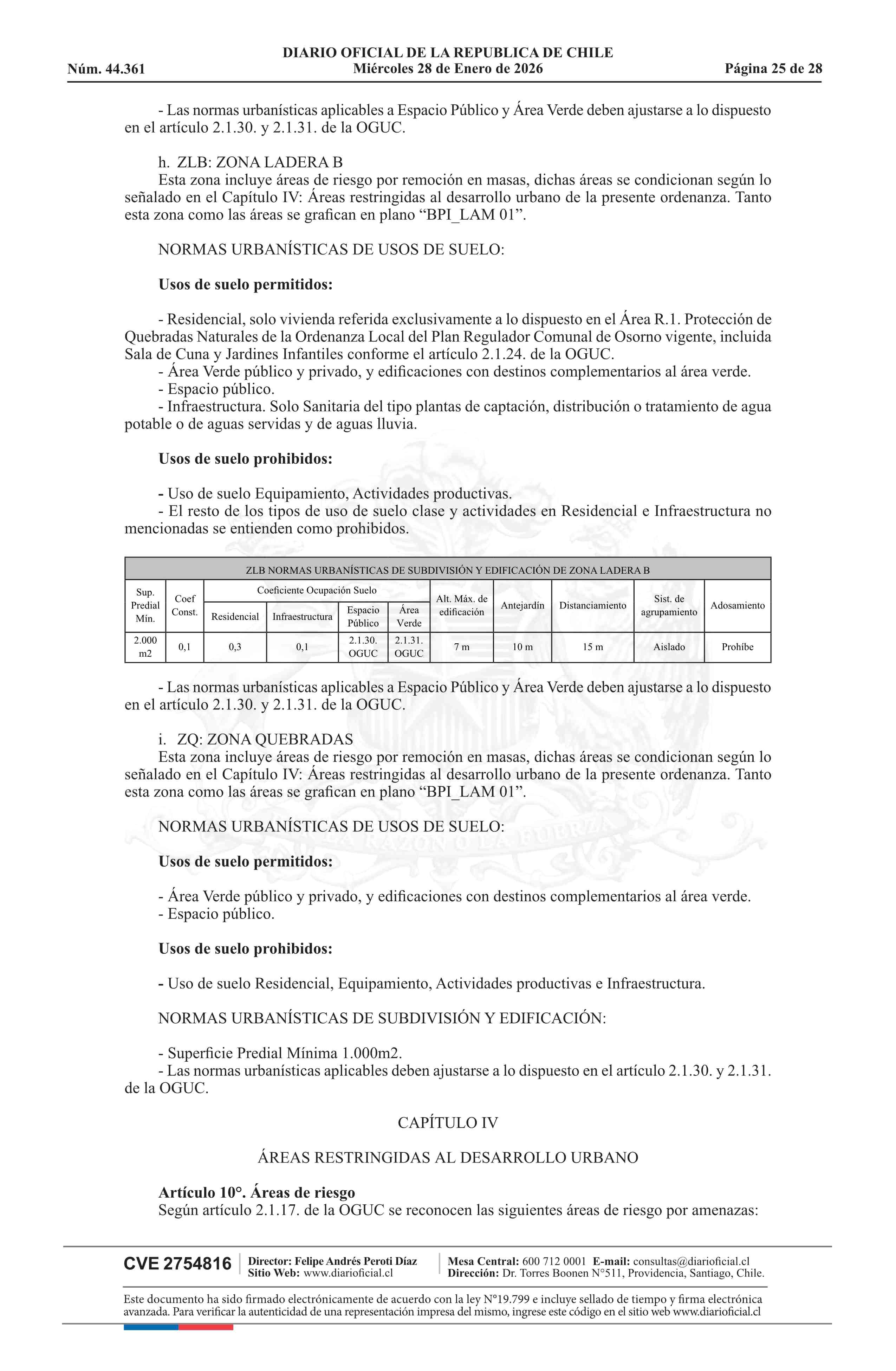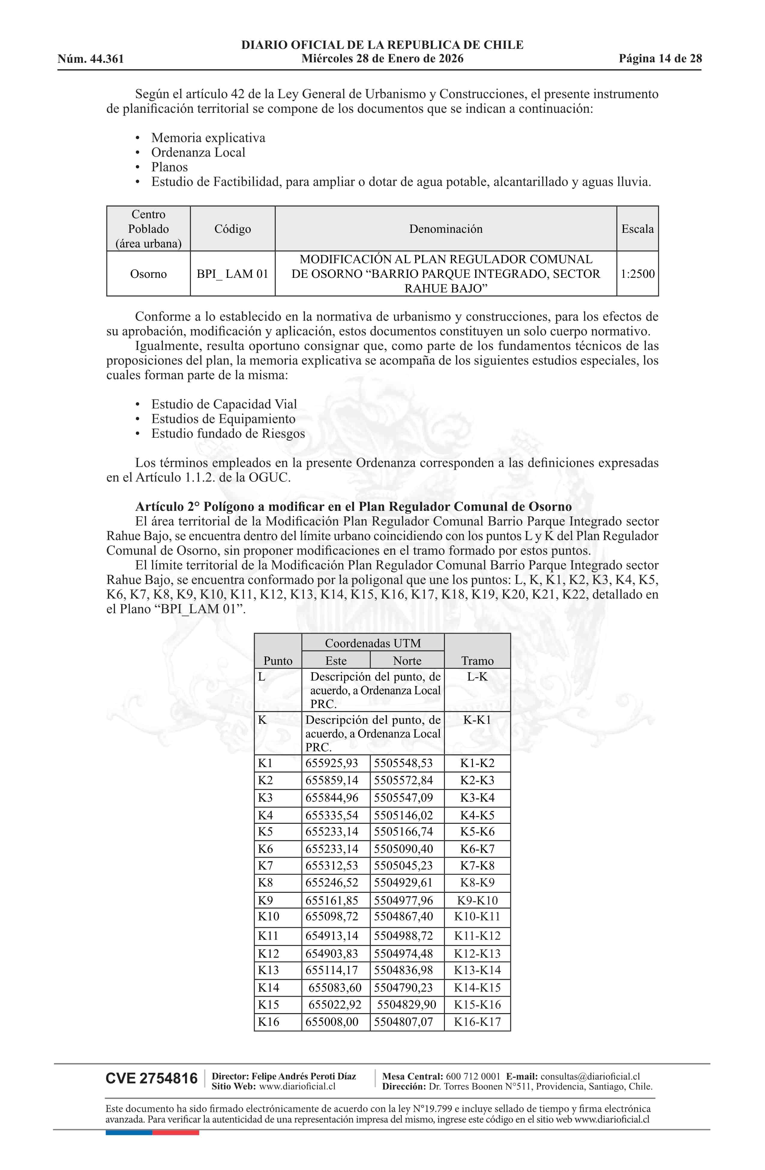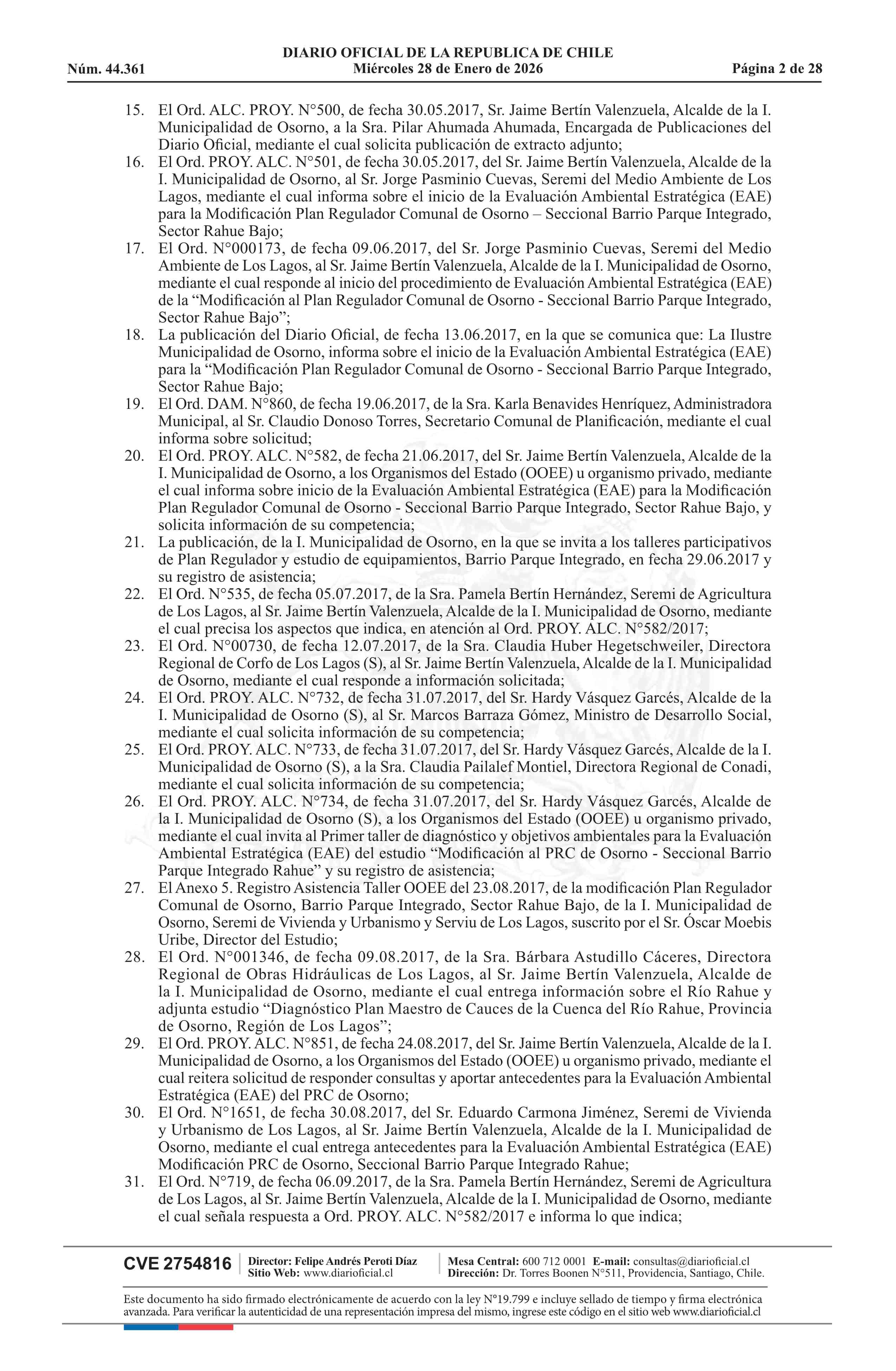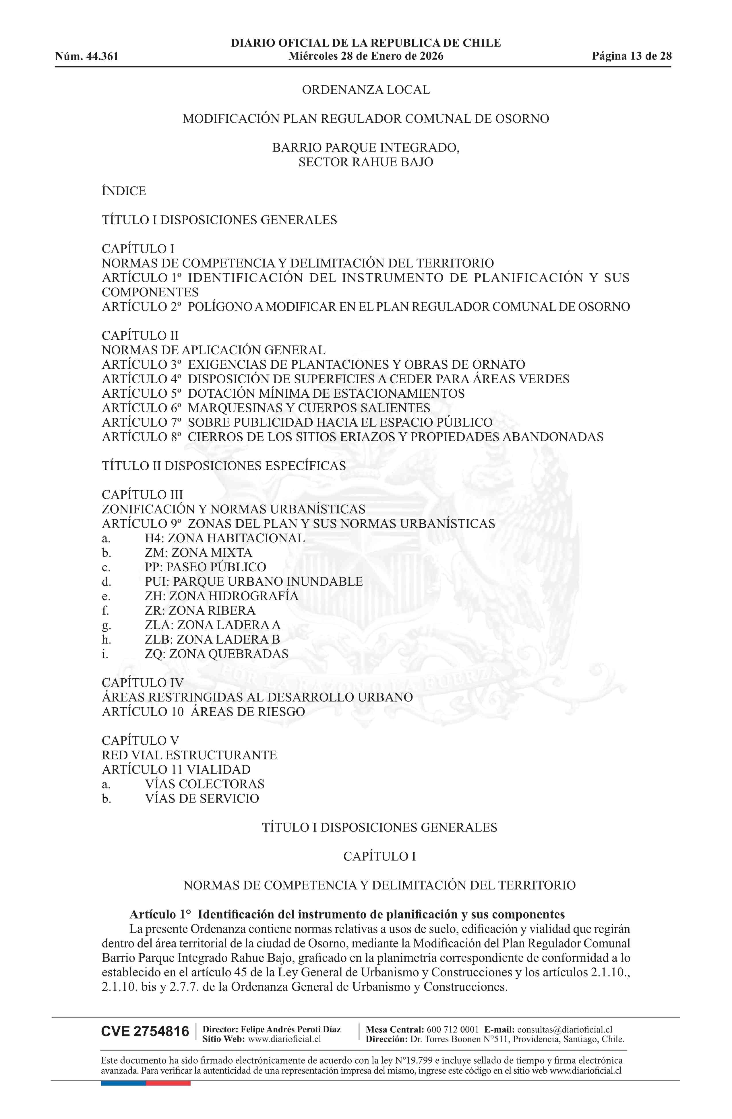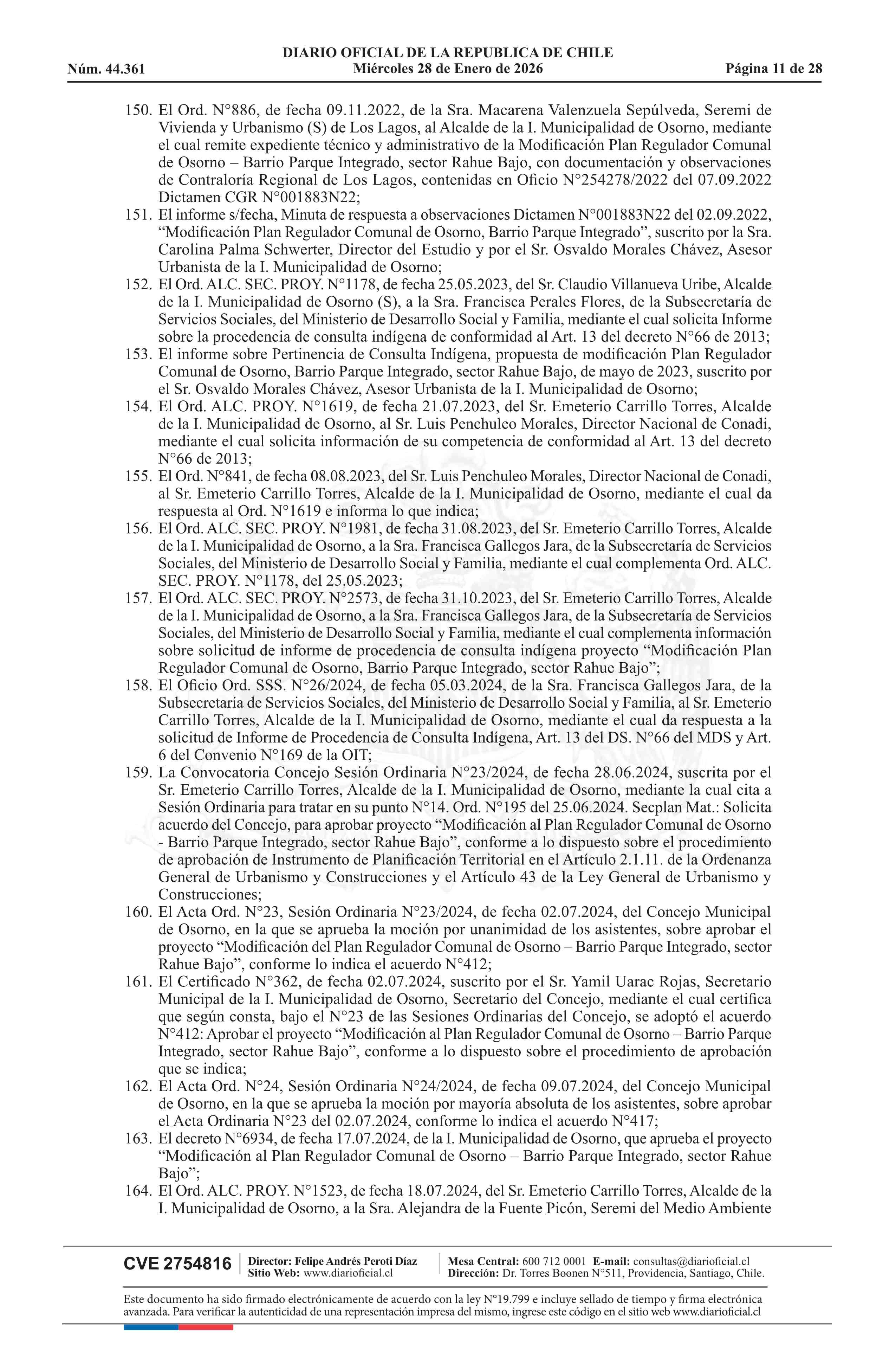 Resolución número 9, de 2025.- Promulga aprobación de la modificación del Plan Regulador Comunal de Osorno - Barrio Parque Integrado, Sector Rahue Bajo 28-01-2026 Diario Oficial Edición Electrónica |