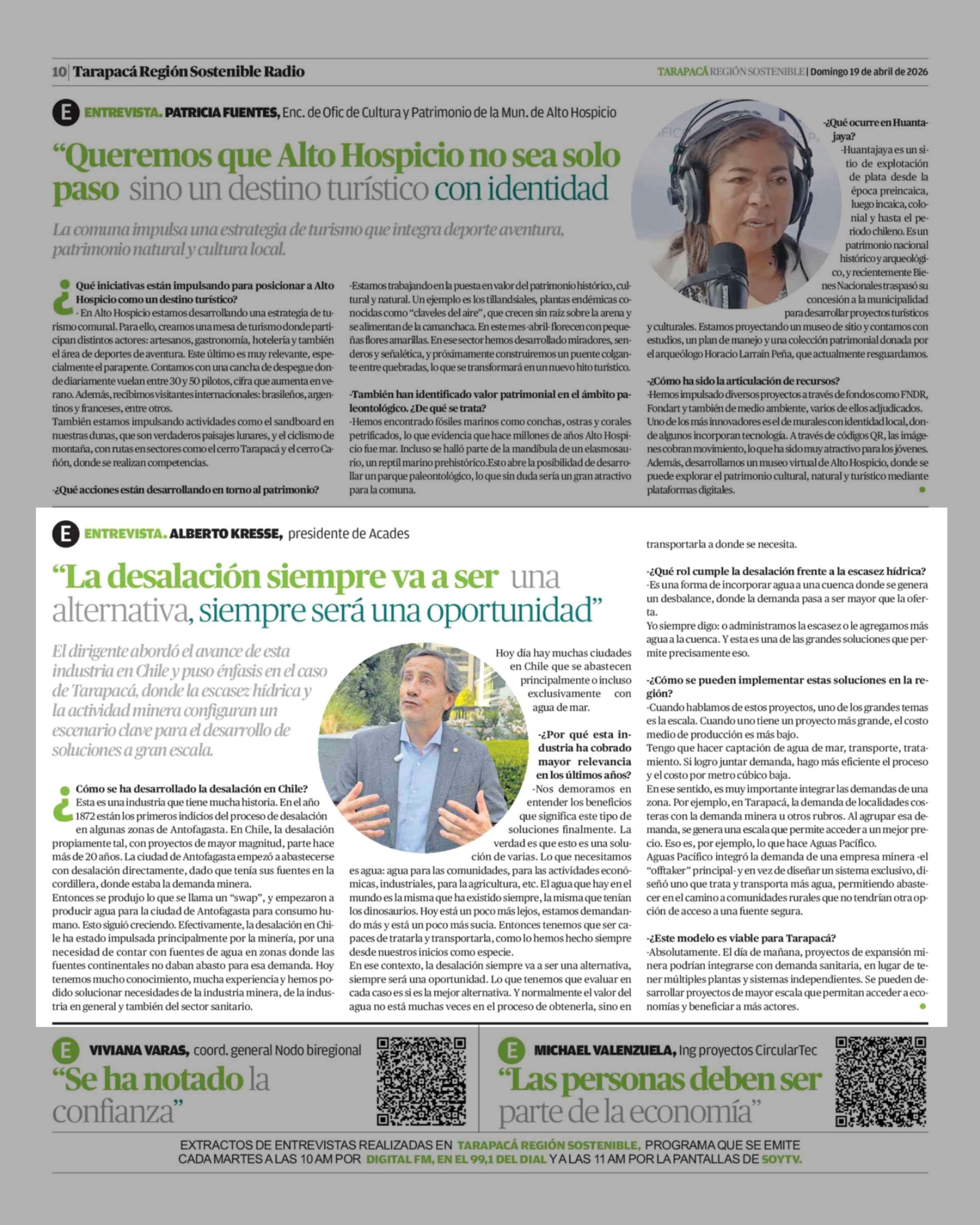 "La desalación siempre va a ser una alternativa, siempre será una oportunidad" 19-04-2026 La Estrella de Iquique |