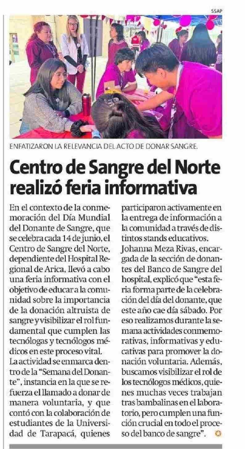 Centro de Sangre del Norte realizó feria informativa 16-06-2025 La Estrella de Arica |