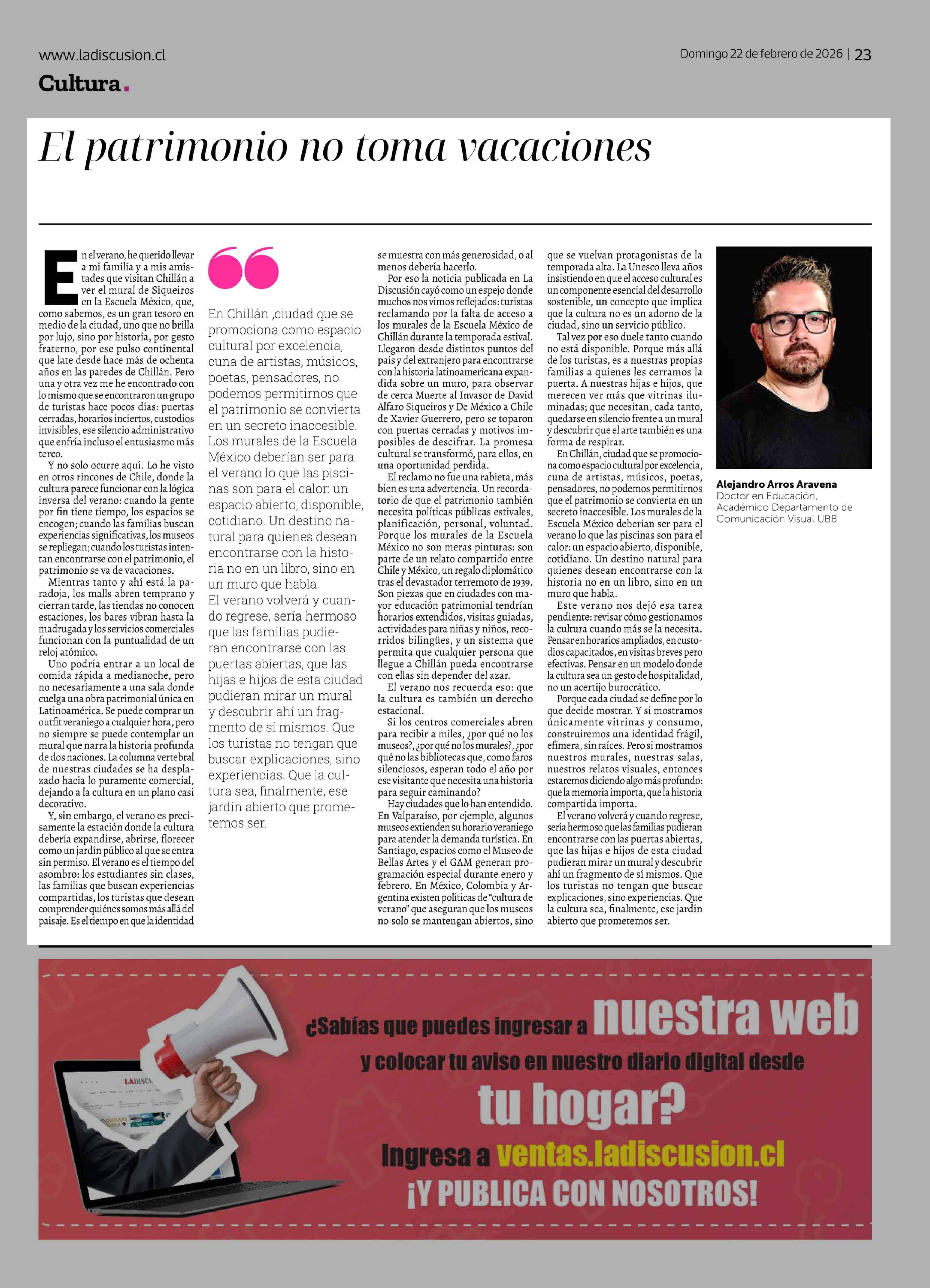 Columnas de Opinión: El patrimonio no toma vacaciones 22-02-2026 La Discusión |