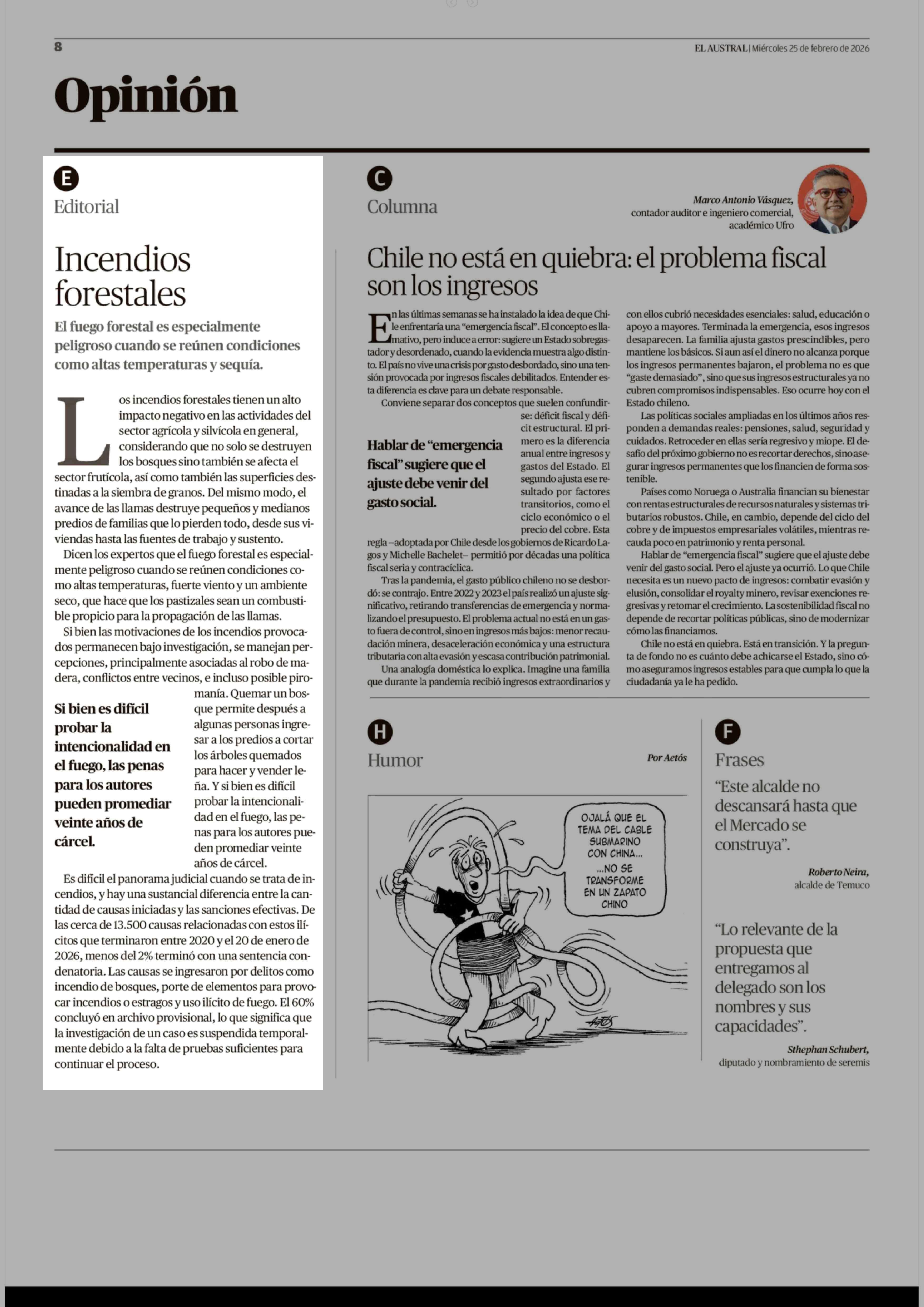 Fecha: 25-02-2026 Sector: Editorial Región: Región de la Araucanía