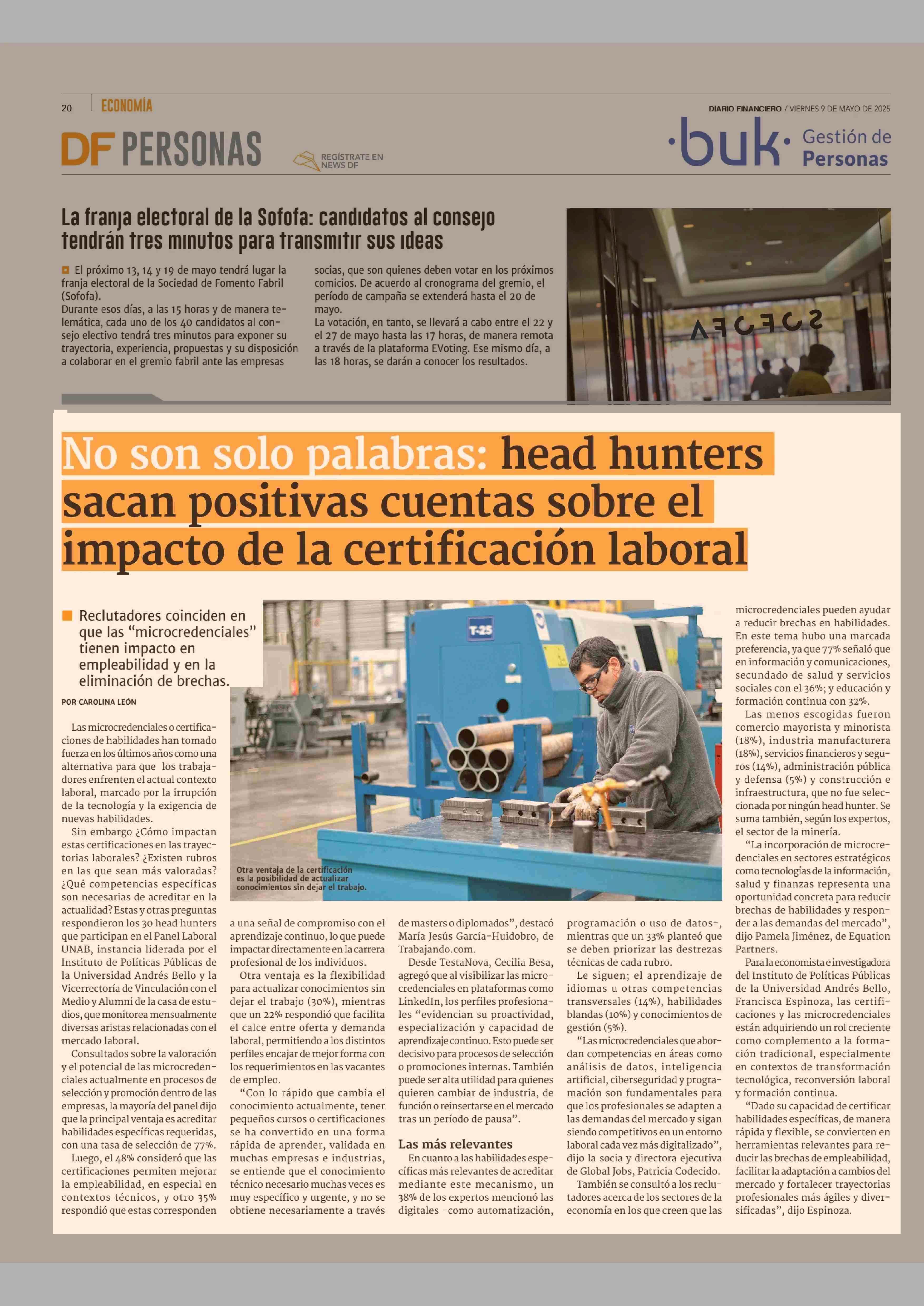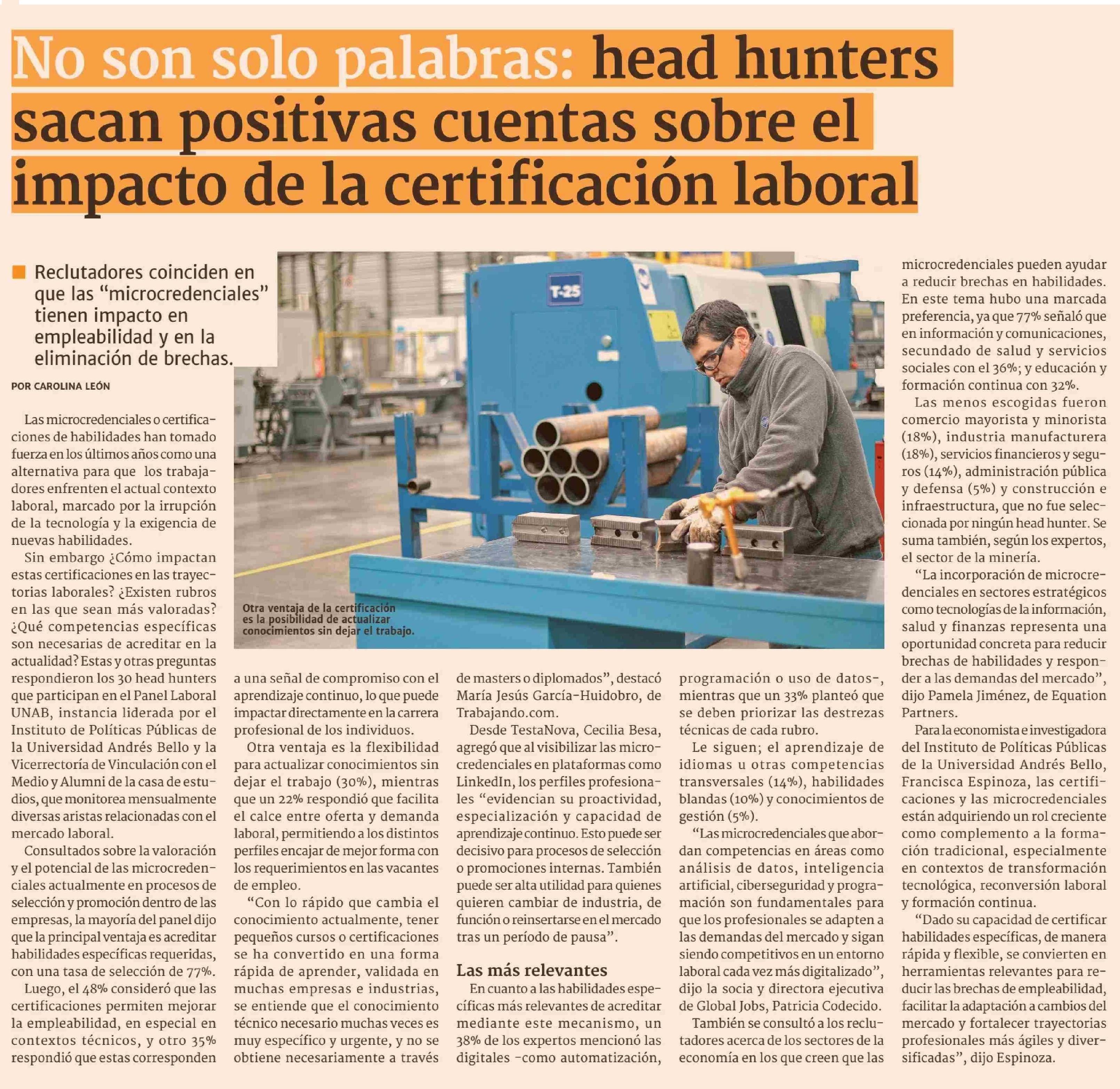 No son solo palabras: head hunters sacan positivas cuentas sobre el impacto de la certificación laboral 09-05-2025 Diario Financiero |