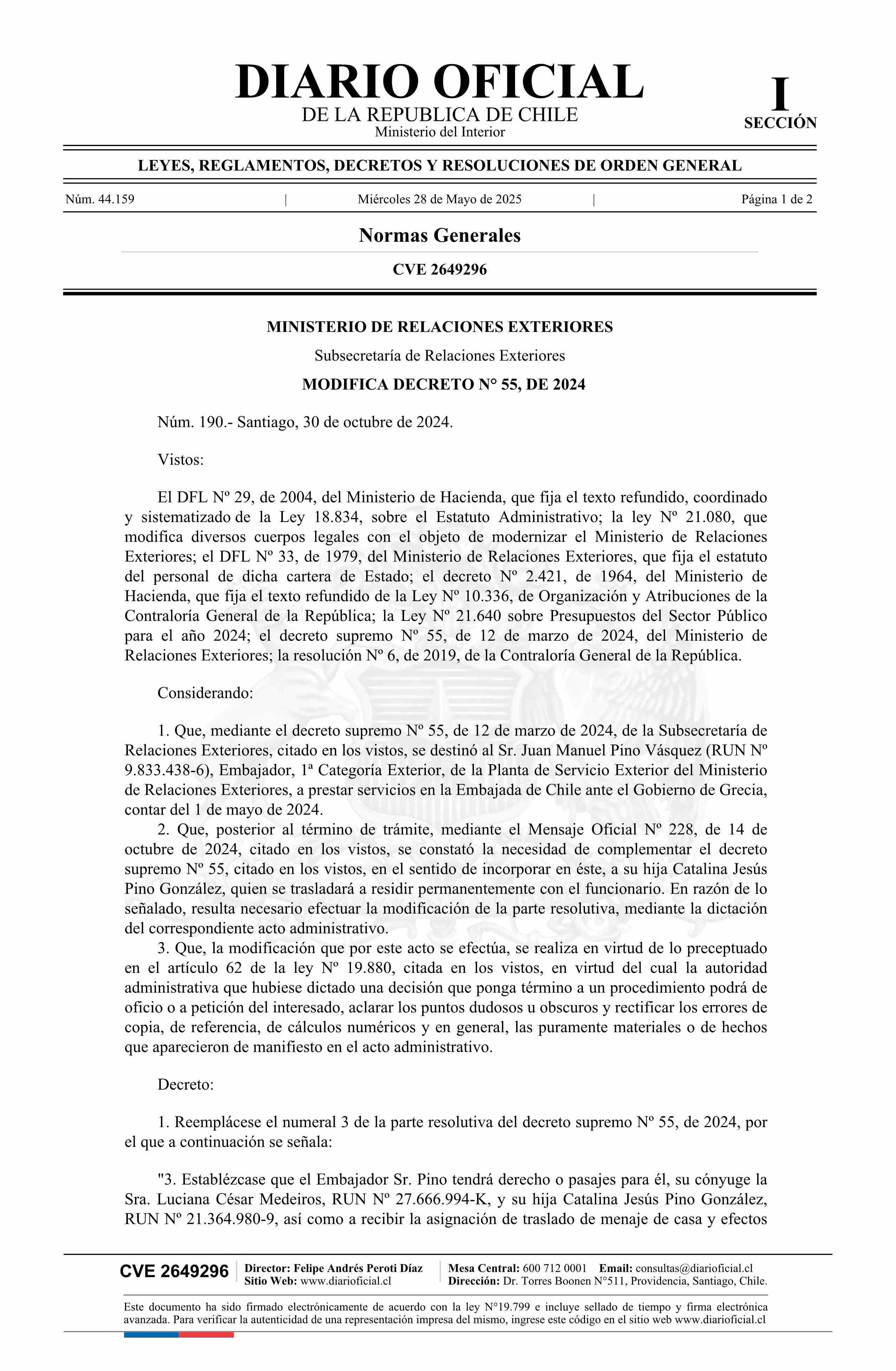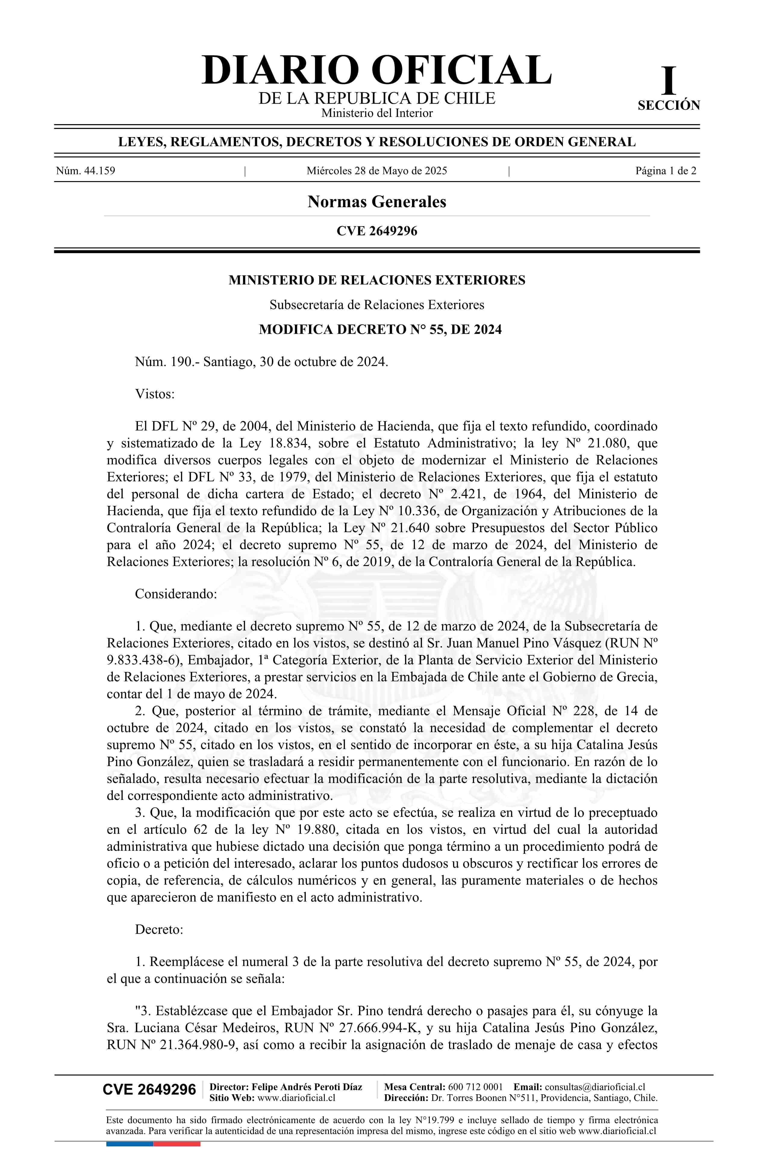 Título: Decreto número 190, de 2024.- Modifica decreto N° 55, de 2024