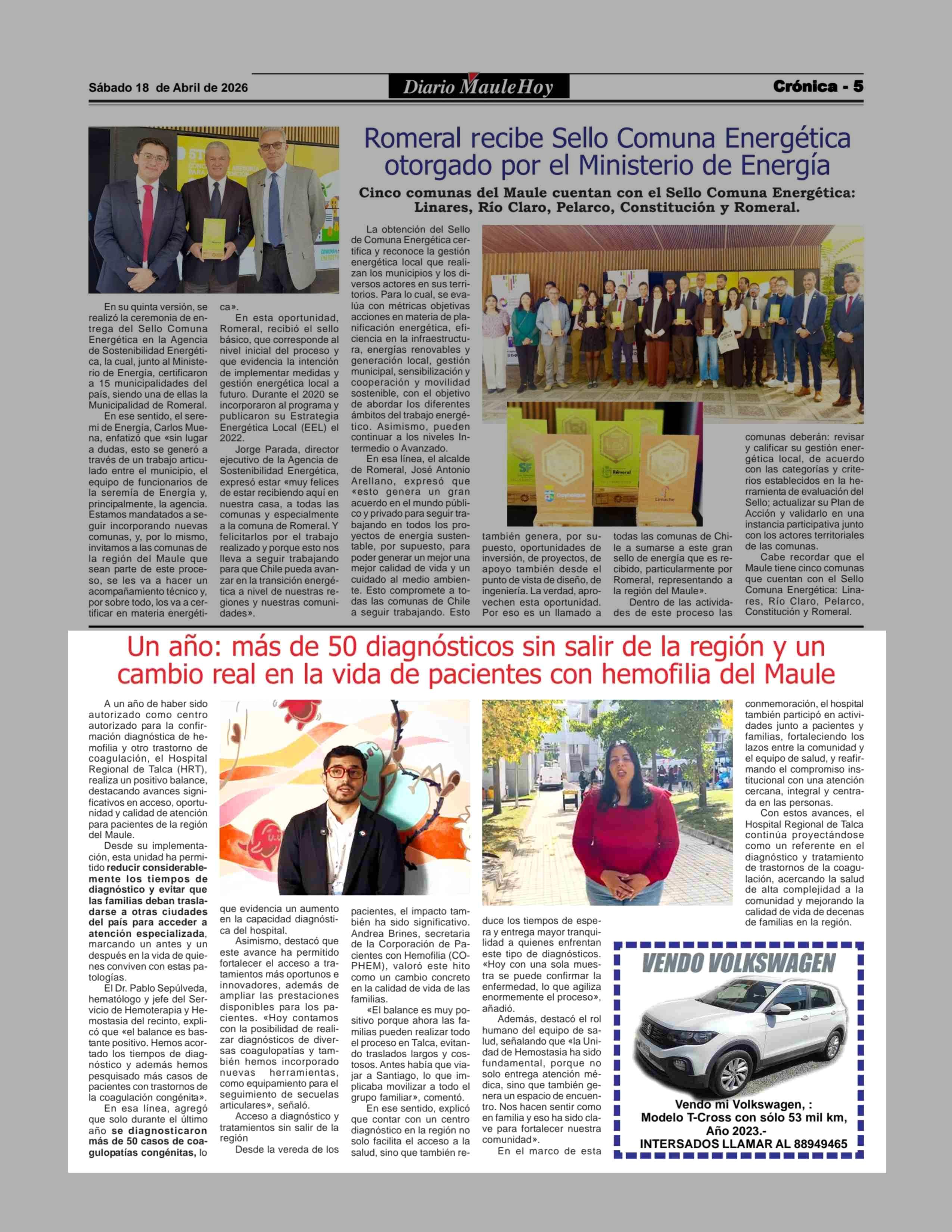 | Fuente: | Maule Hoy (Maule Hoy) | Página(s): | 5 |