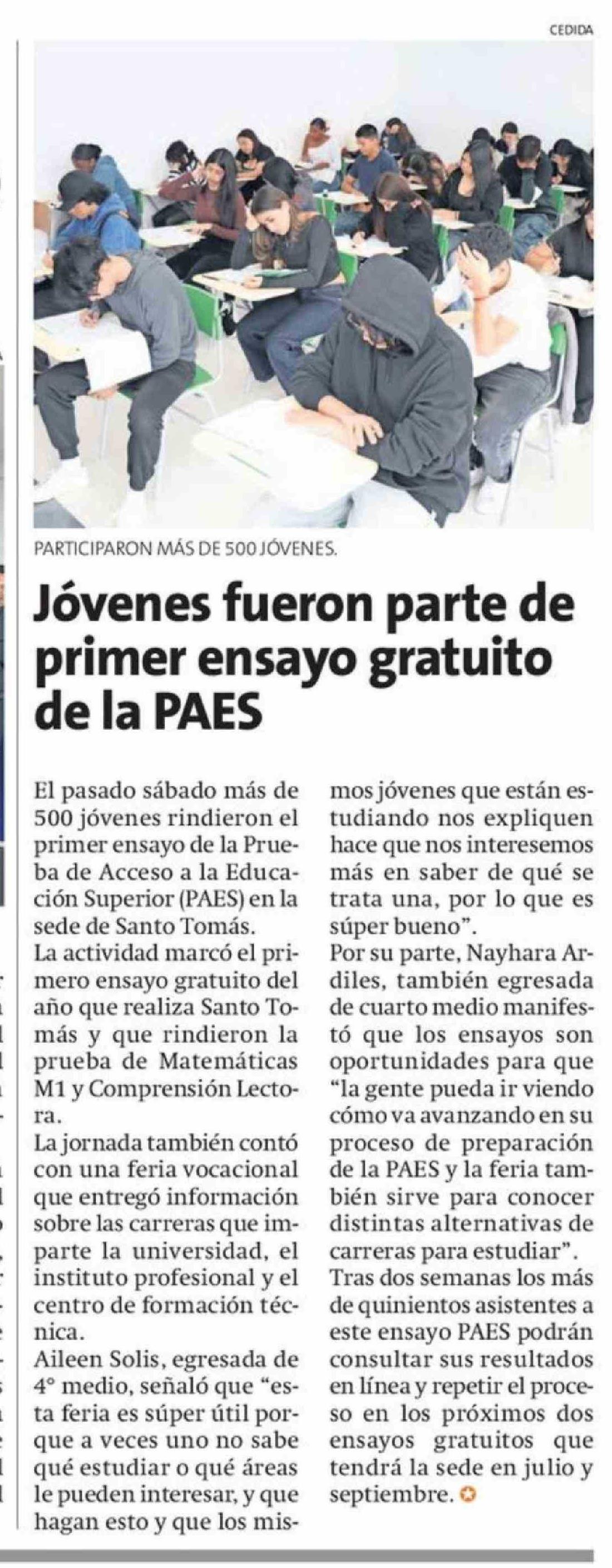 Título: Jóvenes fueron parte de primer ensayo gratuito de la PAES