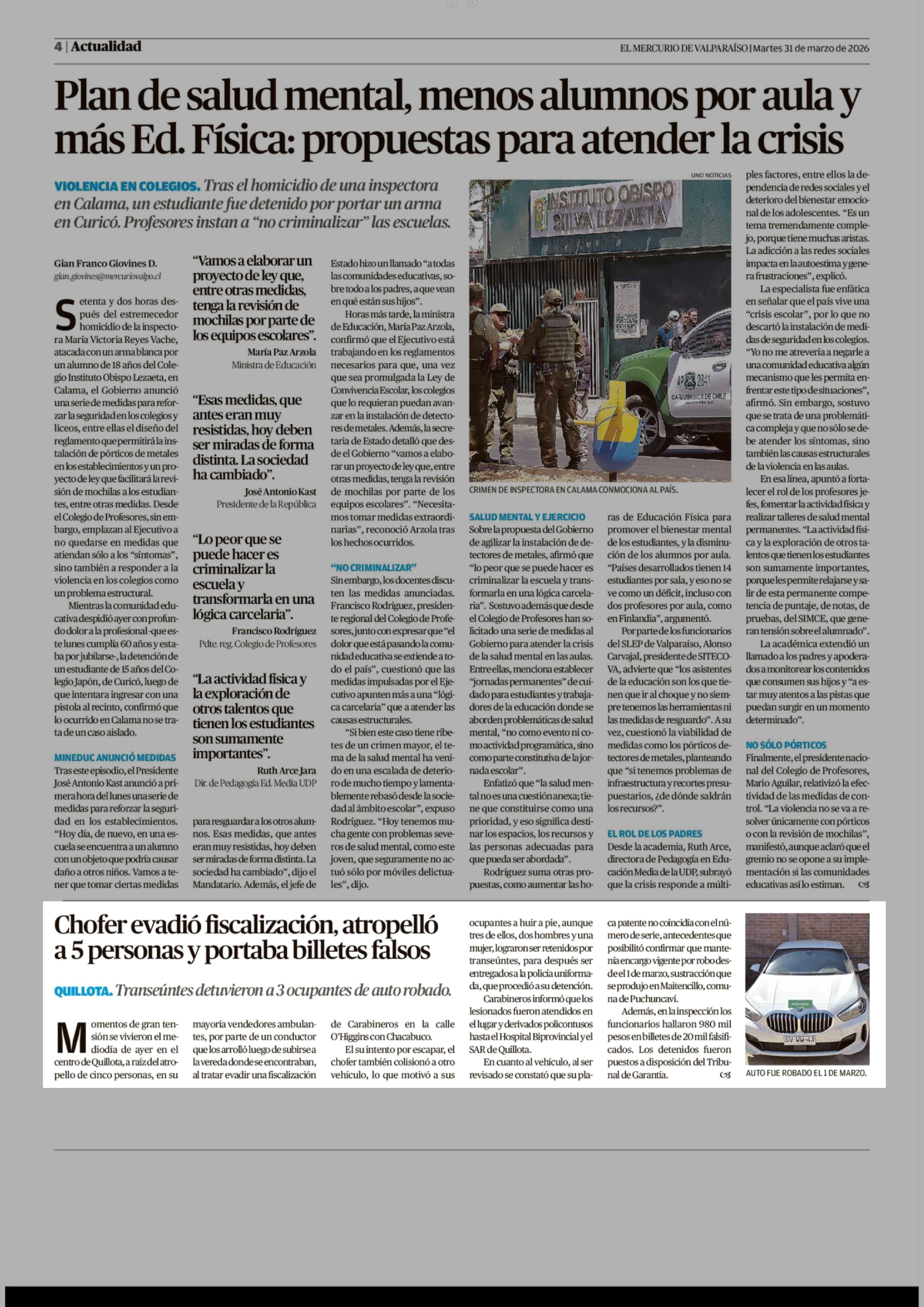 Chofer evadió fiscalización, atropelló a 5 personas y portaba billetes falsos 31-03-2026 El Mercurio de Valparaíso |